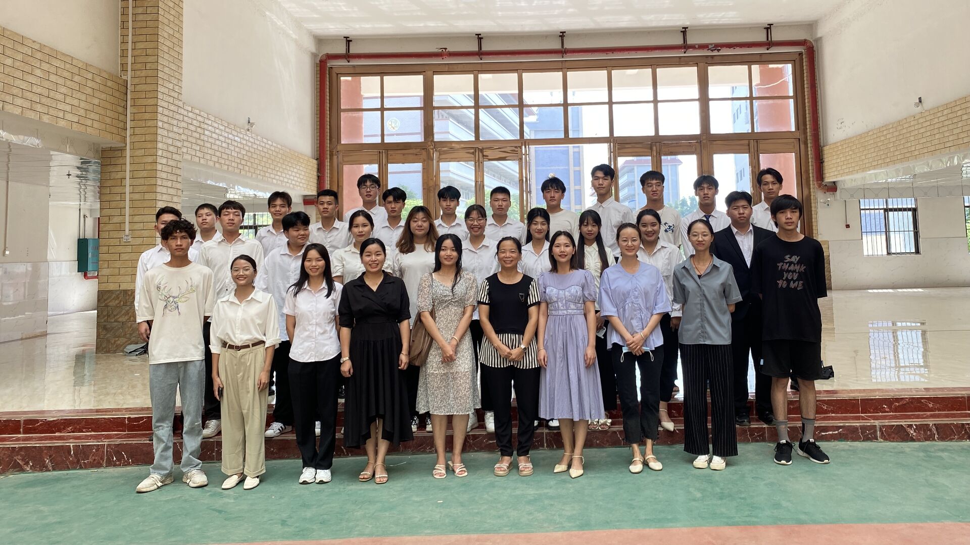 2022年8月28日經(jīng)濟(jì)管理學(xué)院院長(zhǎng)龐英連、酒店管理專業(yè)專任老師莫瑞玲、彭麗文、梁雪梅,輔導(dǎo)員覃蘭蘭在圖文信息大樓歡送酒店管理專業(yè)學(xué)生赴東莞松山湖凱悅酒店實(shí)習(xí)。出席的各位老師對(duì)即將奔赴實(shí)習(xí)崗位的學(xué)生表達(dá)了祝福,愿他們實(shí)習(xí)順利。最后老師和同學(xué)們合影留念。