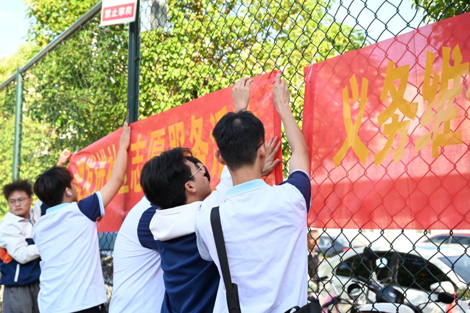 同學(xué)們認(rèn)真布置活動(dòng)現(xiàn)場