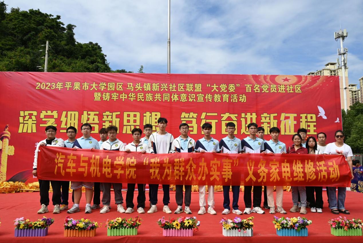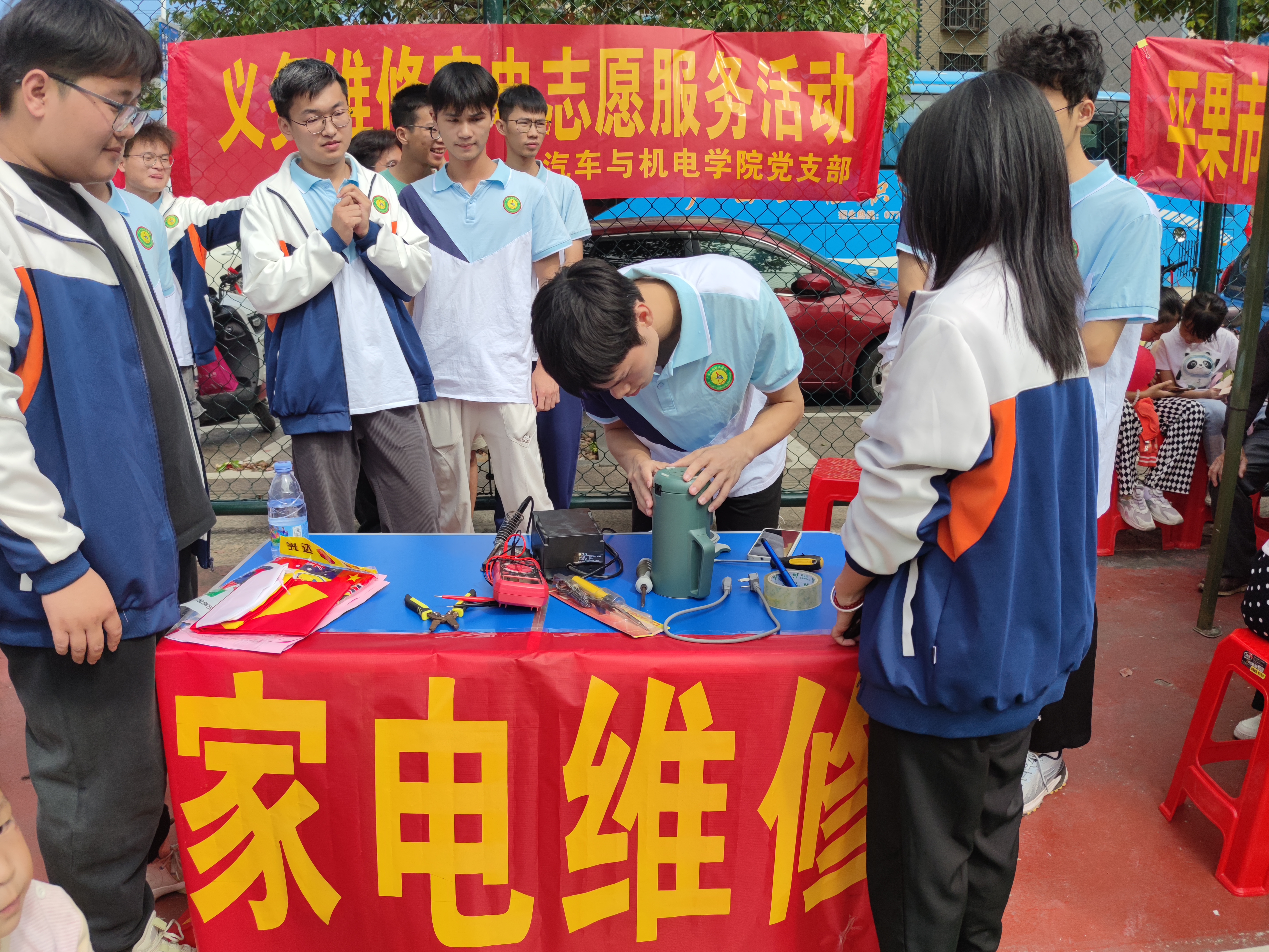 為更好的學(xué)習(xí)貫徹黨的二十大精神,弘揚(yáng)志愿服務(wù)精神,構(gòu)建和諧社會(huì),提高同學(xué)們的積極性,發(fā)揮同學(xué)們的才干與能力,進(jìn)一步提升同學(xué)們獨(dú)立思考、勇于實(shí)踐的精神風(fēng)貌,2023年10月21日,汽車與機(jī)電學(xué)院黨支部在學(xué)校黨委組織下到平果市大學(xué)園區(qū)馬頭鎮(zhèn)新興社區(qū)籃球場開展了“我為群眾辦實(shí)事”義務(wù)家電維修活動(dòng)。