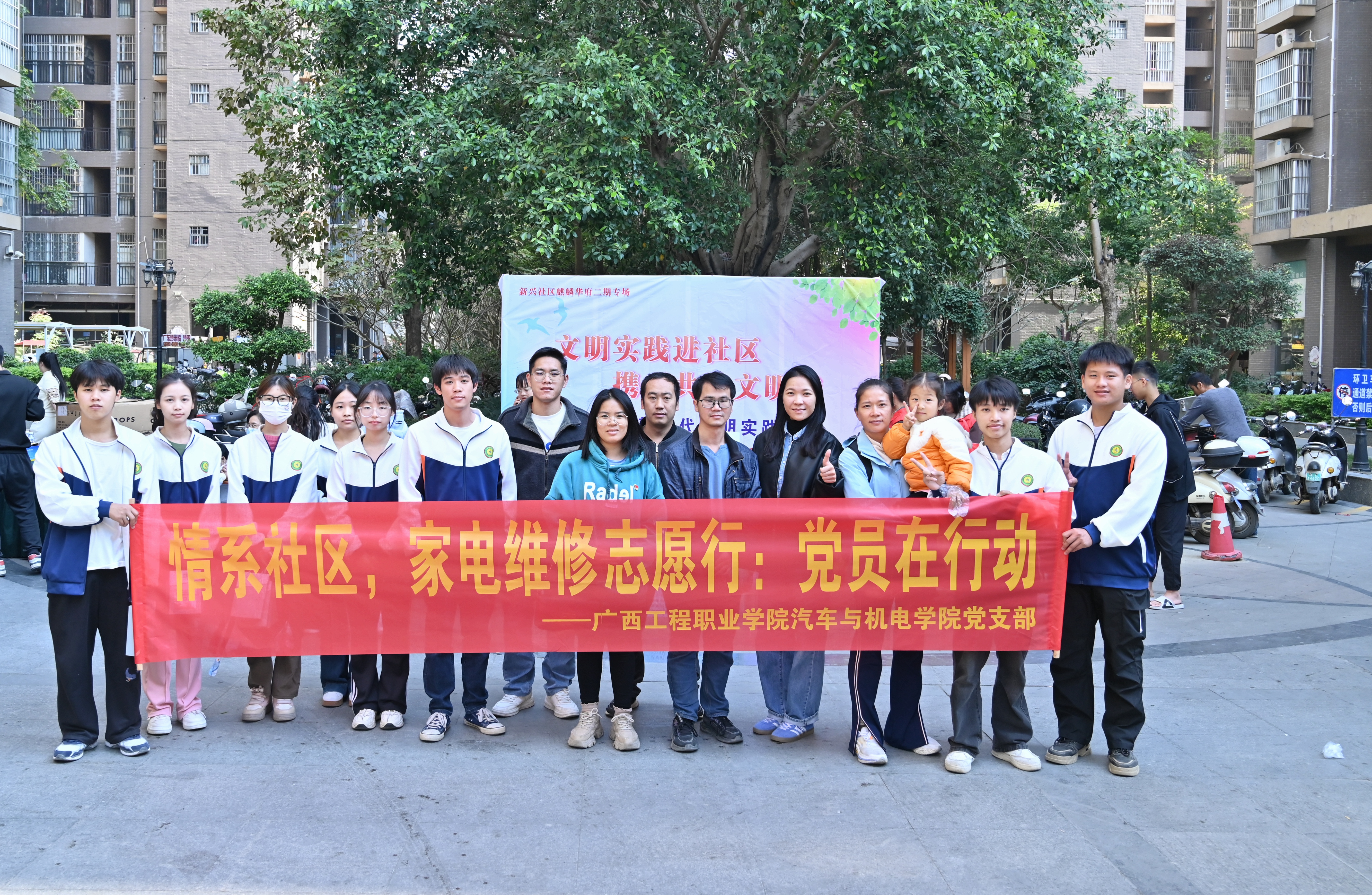 為充分發(fā)揮黨員先鋒模范作用,增強黨支部的凝聚力和服務群眾意識,2024年12月1日在學校黨委指導下,汽車與機電學院黨支部組織師生黨員志愿者前往平果市麒麟華府小區(qū)開展了“情系社區(qū),家電維修志愿行:黨員在行動”義務家電維修志愿服務活動,為社區(qū)居民送去了溫暖與便利。