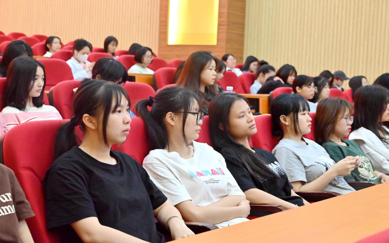 同學(xué)們認(rèn)真聆聽梁院長講話