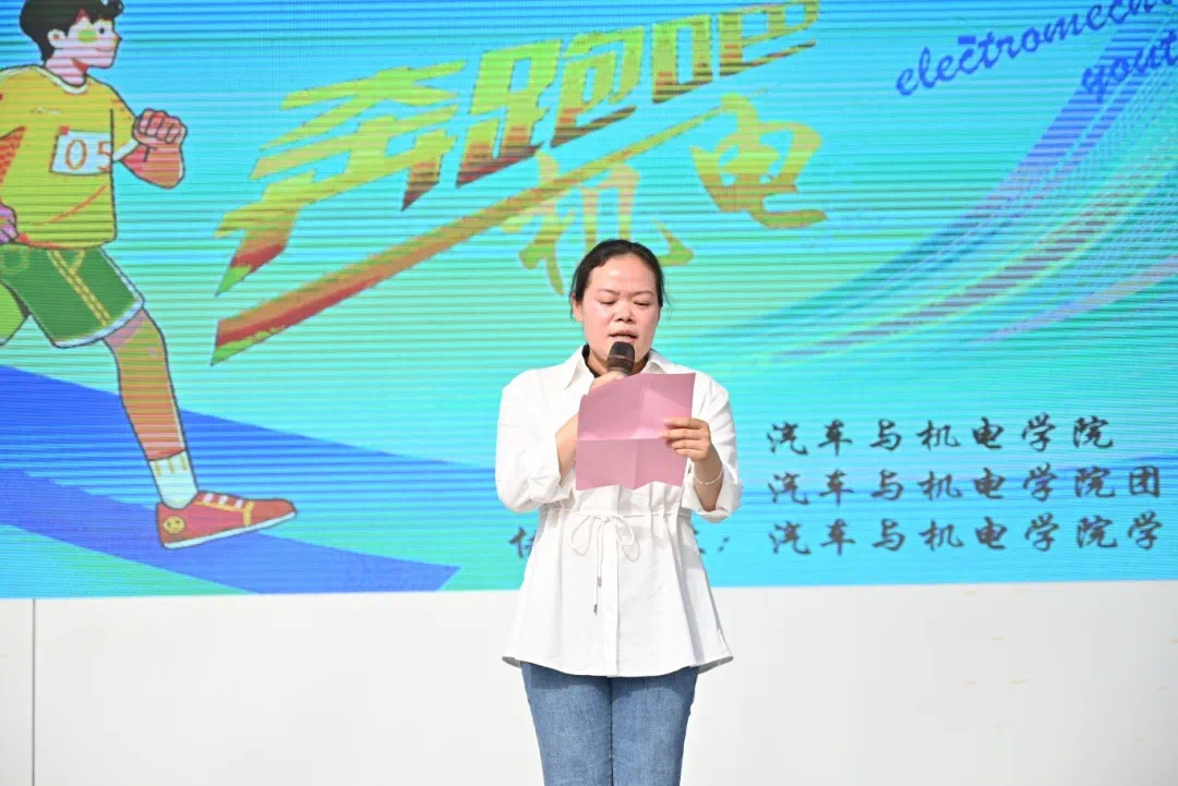 汽車與機(jī)電學(xué)院副院長梁欣欣致辭,她指出,學(xué)院的發(fā)展離不開每一位師生的努力與奉獻(xiàn),希望通過豐富多彩的趣味項(xiàng)目,增進(jìn)師生情誼、凝聚團(tuán)隊(duì)力量,在歡聲笑語中傳遞機(jī)電學(xué)子的拼搏精神與青春活力。最后,她強(qiáng)調(diào),一要安全為先,活動(dòng)過程中,全體參賽者遵守規(guī)則、量力而行,工作人員務(wù)必做好安全保障,確?;顒?dòng)順利開展;二要友誼為重,希望大家秉承“友誼第一,比賽第二”的宗旨,以團(tuán)結(jié)協(xié)作展現(xiàn)機(jī)電風(fēng)采,以文明競技傳遞校園溫度。