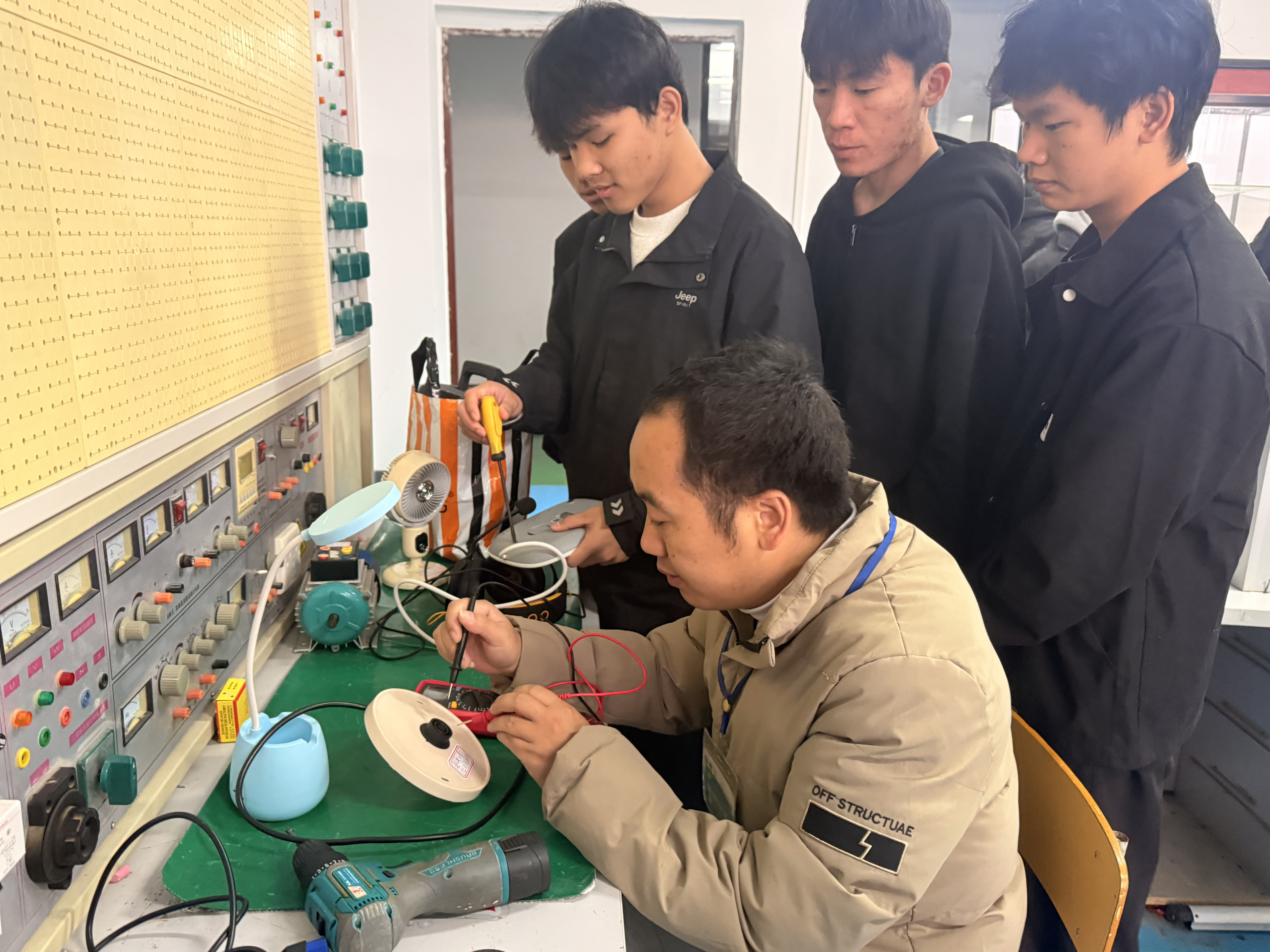 活動(dòng)當(dāng)日,學(xué)院精心布置的服務(wù)點(diǎn)早早便迎來了帶著故障家電前來咨詢的師生。電風(fēng)扇、電熱水壺、電飯煲、微波爐、臺(tái)燈等各類小家電在服務(wù)臺(tái)前有序擺放。由學(xué)院專業(yè)教師帶隊(duì),來自電氣自動(dòng)化技術(shù)等專業(yè)的技術(shù)骨干學(xué)生組成的維修團(tuán)隊(duì),細(xì)致詢問故障現(xiàn)象,并熟練地運(yùn)用萬用表、電烙鐵、螺絲刀等專業(yè)工具進(jìn)行檢測(cè)、診斷與維修。