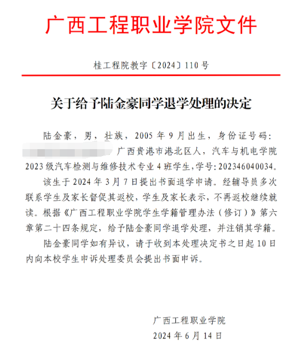下一篇:《關于給予朱柏鴻同學退學處理的決定》的公告