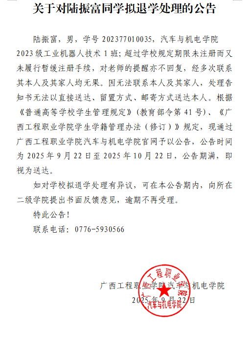 下一篇:關(guān)于對趙榮凱同學(xué)擬退學(xué)處理的公告