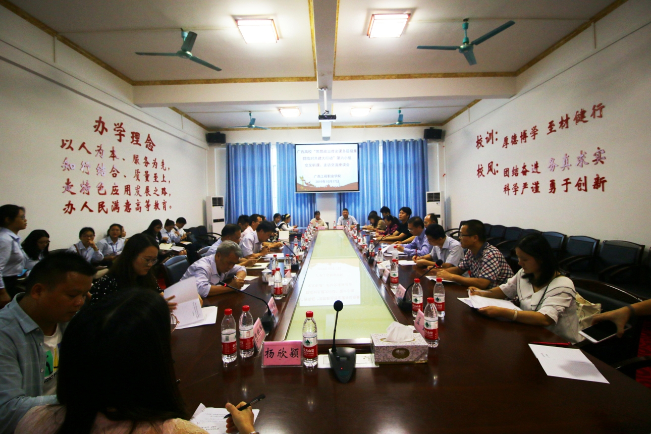 為深入貫徹落實(shí)習(xí)近平總書記在學(xué)校思想政治理論課教師座談會(huì)上的重要講話精神,高質(zhì)量辦好新時(shí)代學(xué)校思想政治理論課,根據(jù)自治區(qū)黨委教育工委、自治區(qū)教育廳關(guān)于印發(fā)《廣西高校“思想政治理論課多層級(jí)集群結(jié)對(duì)共建大行動(dòng)”實(shí)施方案》的通知(桂教工委宣〔2019〕15號(hào))文件精神及要求,第二層次共建高校第六小組于2019年10月17日上午在我校開(kāi)展交叉聽(tīng)課、走訪交流活動(dòng)。