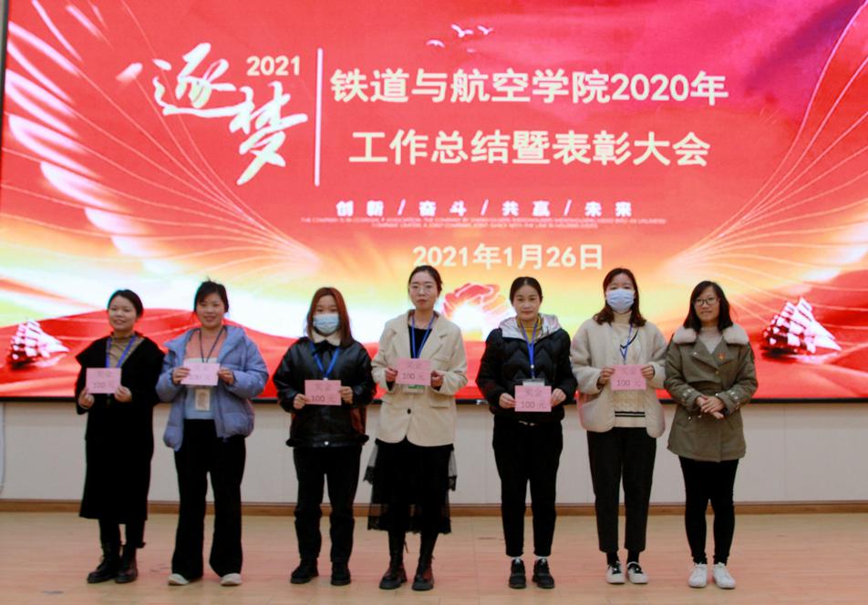 會上,羅丹主任宣讀《鐵道與航空學(xué)院2020年度表彰決定》,黃羽、宋蓉、劉世偉三位老師被評為“優(yōu)秀輔導(dǎo)員”,潘芳連、謝錫潔、楊竟、盧桂玉四位老師被評為“優(yōu)秀教師”;黃晶晶、韓姣龍、黃韻、徐琳、吳婷婷、陳璐等六位教師榮獲鼓勵(lì)獎(jiǎng)。隨后,彭高彬副校長、覃清香副院長為受到表彰的先進(jìn)個(gè)人頒獎(jiǎng)并合影留念。