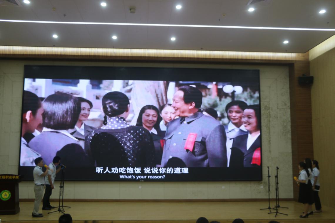 比賽在全體人員奏唱國(guó)歌中拉開(kāi)序幕,在比賽過(guò)程中,各組選手分別為《建國(guó)大業(yè)》、《地道戰(zhàn)》、《烈火中永生》和《小兵張嘎》等紅色經(jīng)典電影配音,選手們相互配合,聲情并茂地將所演繹的角色表現(xiàn)得淋漓盡致,同時(shí)也展現(xiàn)出電影本身所表達(dá)的深刻含義。選手們的精彩表演贏得在場(chǎng)觀眾的陣陣掌聲。