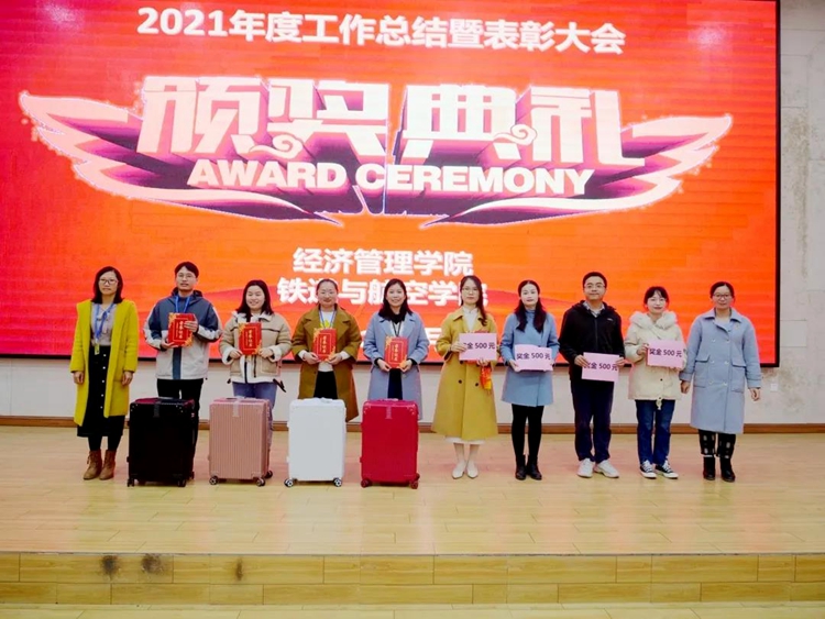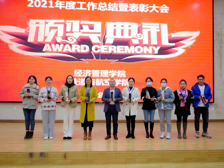 1月5日下午,鐵道與航空學(xué)院與經(jīng)濟(jì)管理學(xué)院在圖文信息大樓一樓報告廳召開2021年度工作總結(jié)暨表彰大會,全面總結(jié)學(xué)院年度工作,表彰先進(jìn),部署下學(xué)期工作任務(wù),推動學(xué)院工作上新臺階。校黨委委員、副校長彭高彬,校長助理、經(jīng)濟(jì)管理學(xué)院黨支部書記、副院長覃清香及鐵道與航空學(xué)院黨支部書記、副院長覃鳳姣出席會議,學(xué)院全體教師參加會議。會議由董文凱老師主持。會上還穿插了幸運(yùn)抽獎環(huán)節(jié),讓老師們提前感受熱鬧的年味。