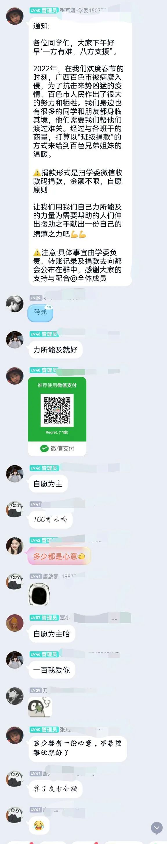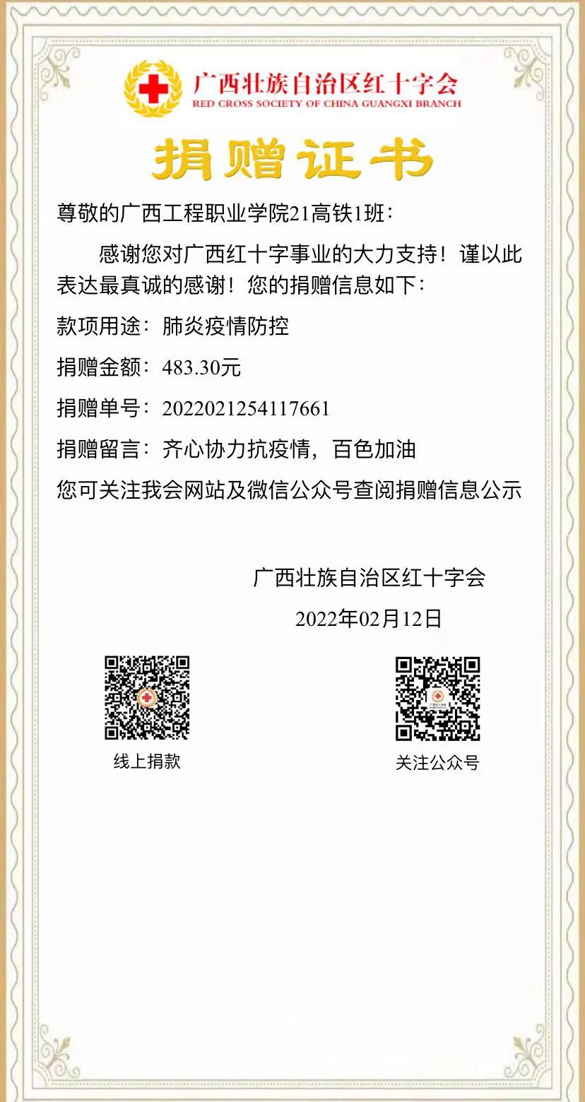 為助力百色市疫情防控,我院學(xué)子自發(fā)發(fā)起號召,積極為抗擊新冠疫情捐款獻愛心。