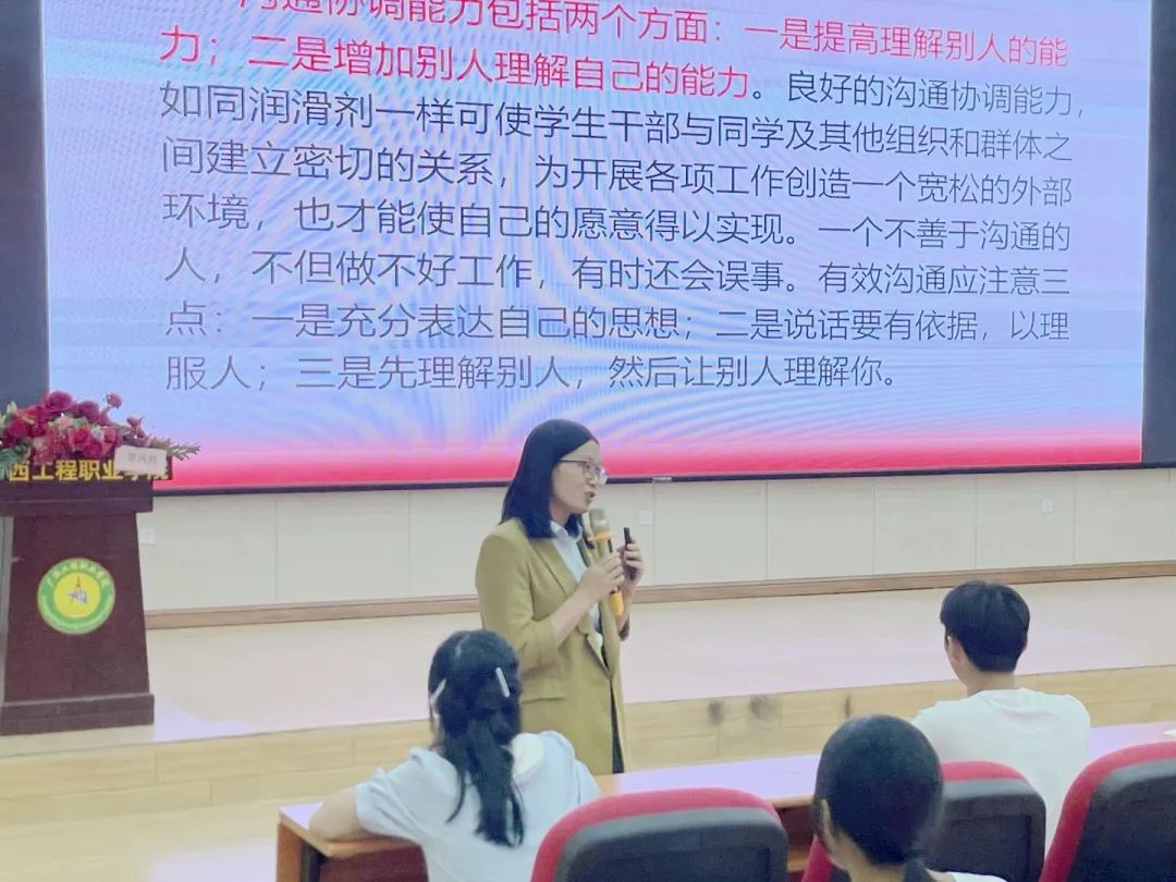 學(xué)院黨支部書記、院長覃鳳姣作題為《學(xué)生干部應(yīng)具備的基本素質(zhì)與能力》的專題培訓(xùn)