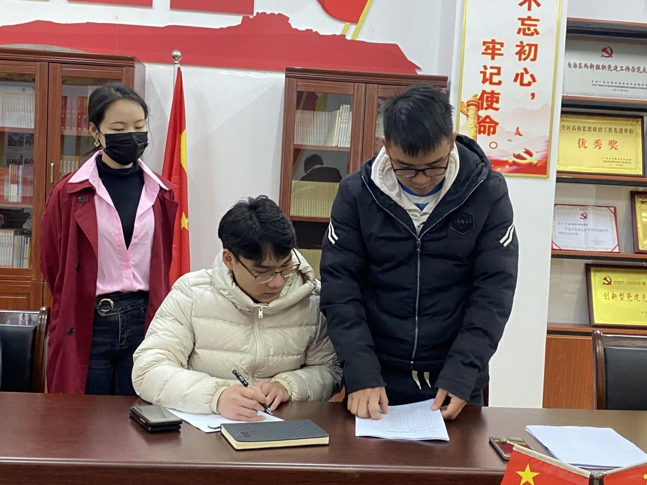 會(huì)上,學(xué)院黨支部書記覃鳳姣帶領(lǐng)支部黨員重點(diǎn)對黨的二十大精神、黨史黨章等內(nèi)容進(jìn)行了學(xué)習(xí),并匯報(bào)了2022年支部工作情況,查擺問題情況以及整改措施,各黨員作出整改承諾,并明確了2023年工作計(jì)劃。隨后,各黨員聯(lián)系自己的思想認(rèn)識(shí)與生活實(shí)際,自我剖析工作生活中存在的優(yōu)缺點(diǎn),依次開展批評和自我批評。并填寫《黨員民主評議黨支部測評表》和《民主評議黨員測評表》。