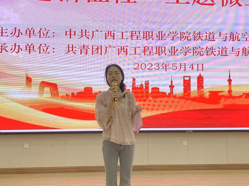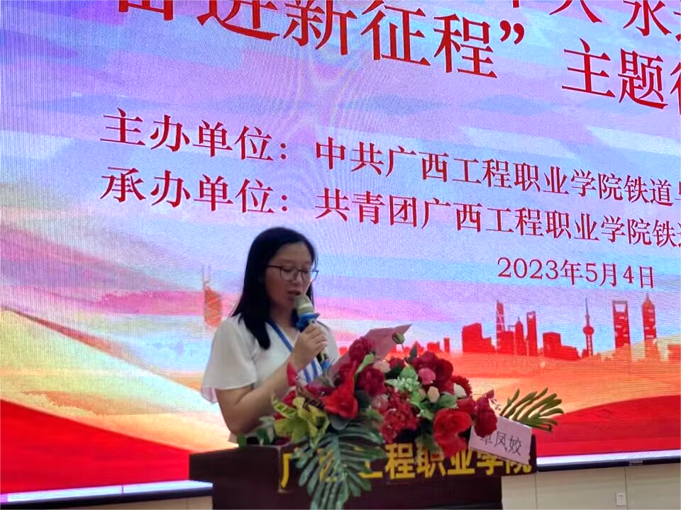 為深入學(xué)習(xí)貫徹習(xí)近平新時(shí)代中國(guó)特色社會(huì)主義思想和黨的二十大精神,推動(dòng)黨的創(chuàng)新理論走進(jìn)青年、深入人心。5月4日,鐵道與航空學(xué)院在學(xué)校圖文信息大樓一樓學(xué)術(shù)報(bào)告廳舉行大學(xué)生黨的二十大精神理論微宣講比賽。鐵道與航空學(xué)院黨支部書記、院長(zhǎng)覃鳳姣出席比賽,鐵道與航空學(xué)院大多數(shù)教師與學(xué)生到場(chǎng)觀看比賽。鐵道與航空學(xué)院黨支部組織委員謝錫潔、鐵道與航空學(xué)院黨支部紀(jì)檢委員黃家歡、鐵道與航空學(xué)院黨員教師梁春雨、盧桂玉、黃滿秋擔(dān)任此次比賽的評(píng)委。