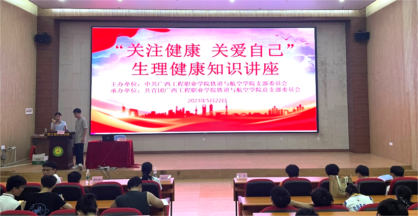 為增強(qiáng)廣大學(xué)生對青春期生理知識的了解,加強(qiáng)青春期生理健康教育,增強(qiáng)防范和自我保護(hù)意識,提高學(xué)生健康意識與水平,樹立健康生活理念。鐵道與航空學(xué)院于5月22日晚在圖文信息大樓一樓學(xué)術(shù)報告廳和圖文信息大樓五樓學(xué)術(shù)報告廳同時開展“關(guān)注健康,關(guān)愛自己”生理健康知識講座。本次講座由平果市婦幼保健院婦產(chǎn)科副主任醫(yī)師玉丹和平果市婦幼保健院副主任醫(yī)師覃文娟主講。鐵道與航空學(xué)院黨支部書記、院長覃鳳姣、黨支部副書記宋蓉、黨支部宣傳委員辦公室主任黃晶晶、學(xué)生科長謝小玲、輔導(dǎo)員黃家歡、莫禮偉、黃滿秋、韓姣龍、馬丹丹、及學(xué)生代表到場聆聽講座。
