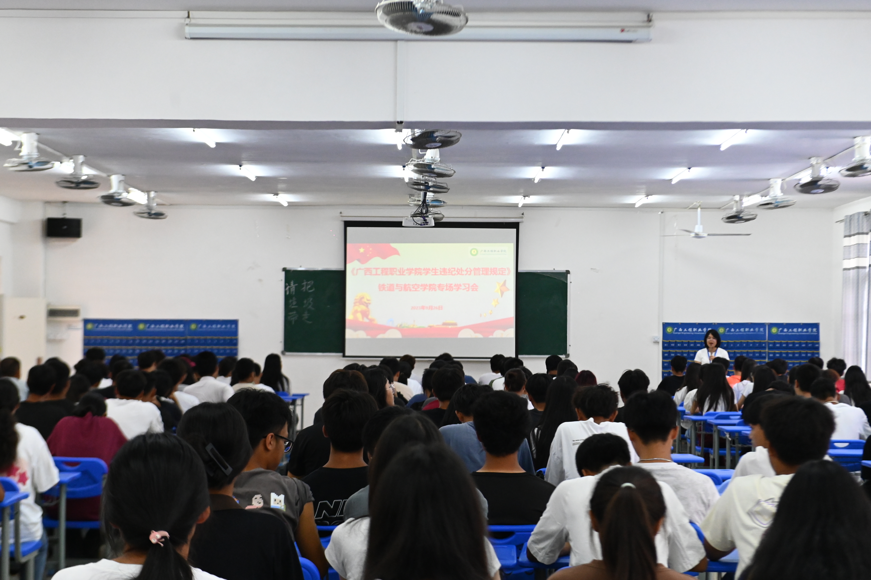 為進(jìn)一步維護(hù)學(xué)校正常的教育教學(xué)秩序和生活秩序,規(guī)范2023級新生的日常學(xué)習(xí)生活,保障學(xué)生合法權(quán)益,培養(yǎng)德智體美勞全面發(fā)展的社會主義建設(shè)者和接班人,鐵道與航空學(xué)院于9月26日下午,組織開展2023級新生入學(xué)教育之《學(xué)生違紀(jì)處分管理規(guī)定學(xué)習(xí)》專題培訓(xùn)。鐵道與航空學(xué)院黨支部副書記宋蓉?fù)?dān)任此次專題培訓(xùn)的主講人,學(xué)院2023級全體學(xué)生參加此次培訓(xùn)。