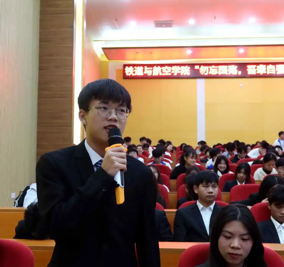 活動(dòng)伊始,鐵道與航空學(xué)院分團(tuán)委書(shū)記謝小玲講話,她表示新時(shí)代的青年肩負(fù)著新時(shí)代的歷史使命,我們要繼承和發(fā)揚(yáng)先行者留給我們的不怕困難、勇于犧牲的精神,錘煉自身,增強(qiáng)本領(lǐng),提高素質(zhì),不斷成長(zhǎng)為國(guó)之棟梁。通過(guò)開(kāi)展此次“勿忘國(guó)殤 吾輩自強(qiáng)”國(guó)家公祭日主題團(tuán)日活動(dòng),希望同學(xué)們銘記歷史,以史為鑒,奮發(fā)圖強(qiáng),振興中華!