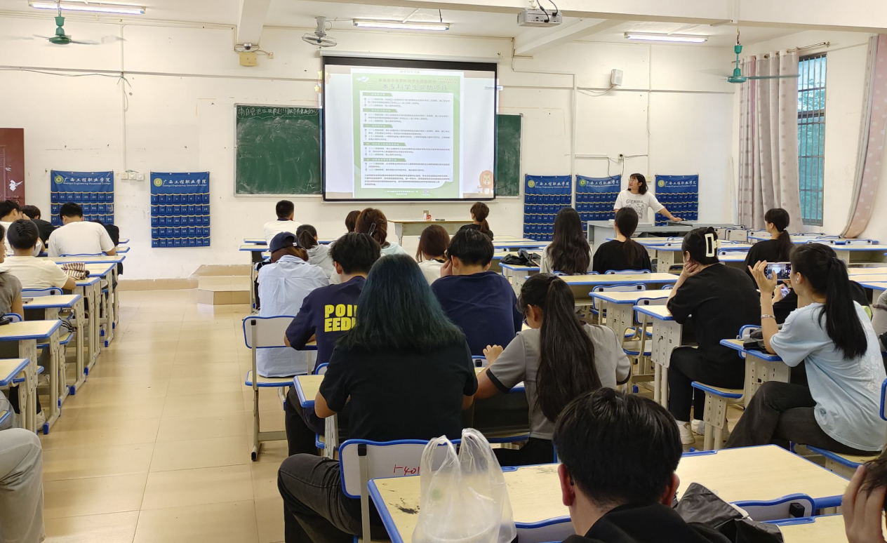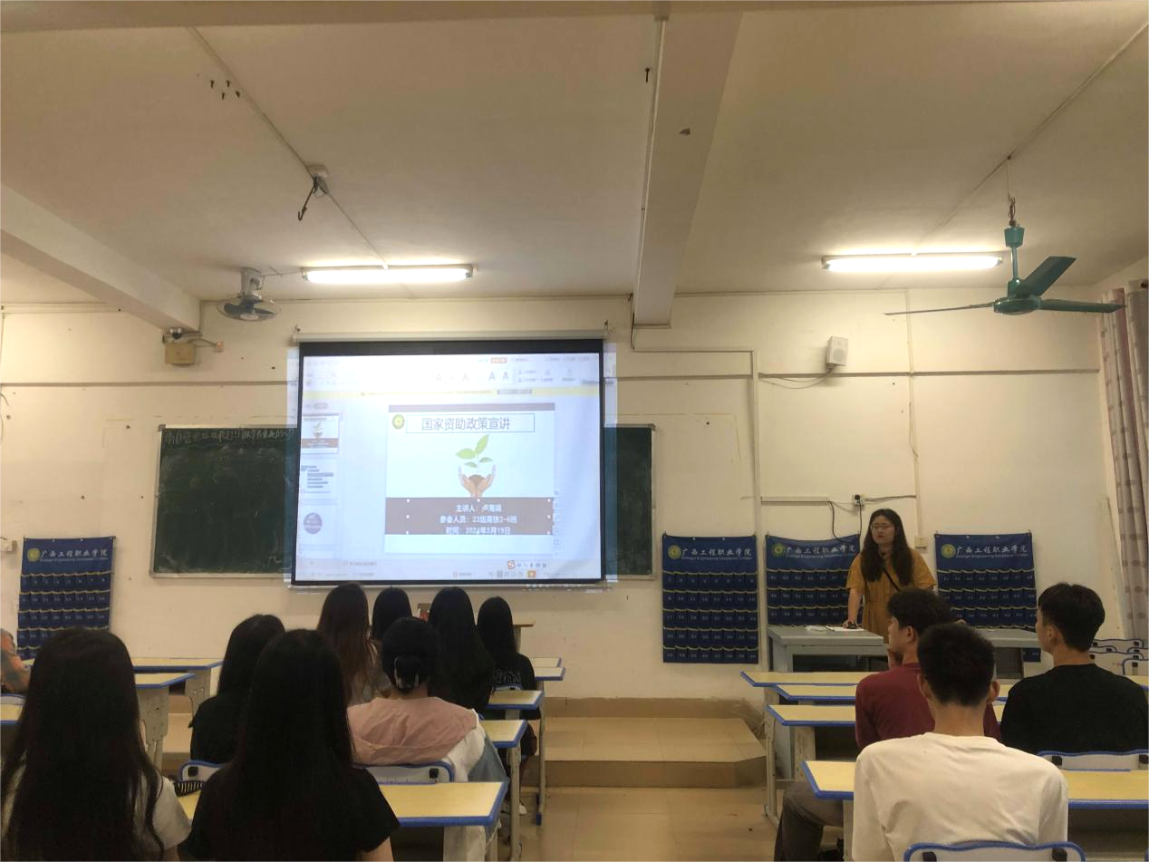圖為2023級輔導(dǎo)員盧海娟在開資助政策宣講主題班會現(xiàn)場圖片