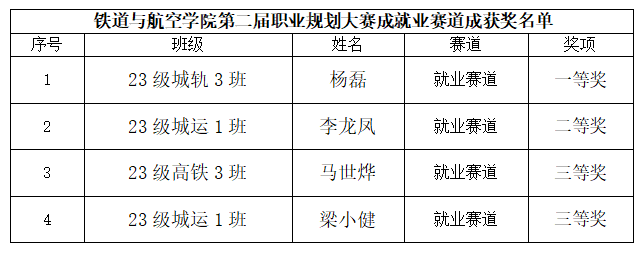 經(jīng)過緊張激烈的角逐,本次大賽最終評選出就業(yè)賽道一等獎1名、二等獎1名、三等獎2名;成長賽道一等獎2名、二等獎3名、三等獎4名,以及優(yōu)秀獎共計(jì)5名。