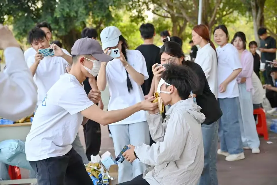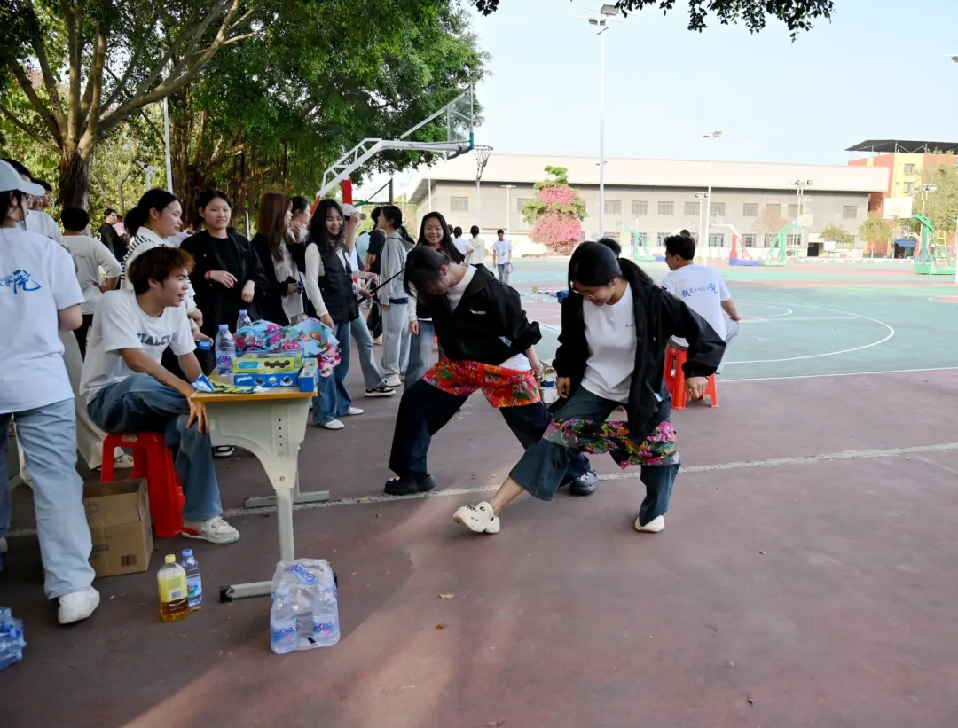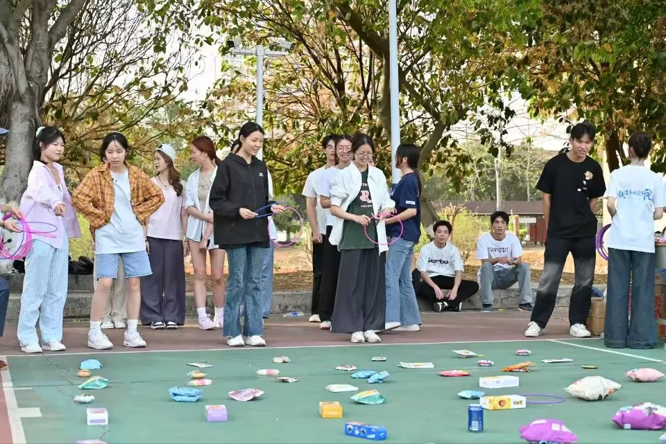 除了激烈的競技比賽,活動現(xiàn)場還設(shè)置了多個趣味小游戲,如套圈活動、蒙眼吃香蕉、徒手穿花褲等。在套圈活動中,師生們站在指定線外,對準(zhǔn)目標(biāo)扔出圈圈,套中物體即為成功。蒙眼吃香蕉則考驗了兩人之間的默契,一人蒙眼,一人指揮,將香蕉喂到同伴口中。徒手穿花褲更是吸引了眾多觀眾的目光,參賽人員在指定區(qū)域快速穿上特制花褲,完成規(guī)定動作,現(xiàn)場笑聲不斷。
