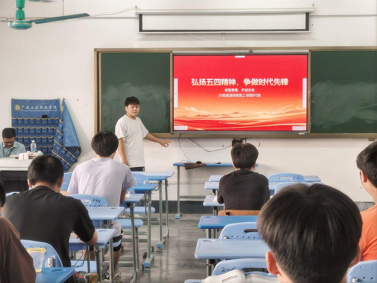 為深入學(xué)習(xí)貫徹習(xí)近平總書(shū)記關(guān)于五四精神的重要論述,引導(dǎo)廣大青年團(tuán)員傳承“愛(ài)國(guó)、進(jìn)步、民主、科學(xué)”的五四精神,厚植家國(guó)情懷,勇?lián)鷷r(shí)代使命。2025年4月29日,廣西工程職業(yè)學(xué)院鐵道與航空學(xué)院特此發(fā)起“賡續(xù)五四精神 激揚(yáng)青春力量”主題系列活動(dòng),號(hào)召各班級(jí)團(tuán)支部積極行動(dòng),圍繞“青春奮進(jìn)新時(shí)代,挺膺擔(dān)當(dāng)譜華章”主線,開(kāi)展形式多樣、內(nèi)涵豐富的主題實(shí)踐,引領(lǐng)廣大青年以青春之我、奮斗之我,為中國(guó)式現(xiàn)代化建設(shè)挺膺擔(dān)當(dāng),在民族復(fù)興偉業(yè)中書(shū)寫(xiě)壯麗篇章。