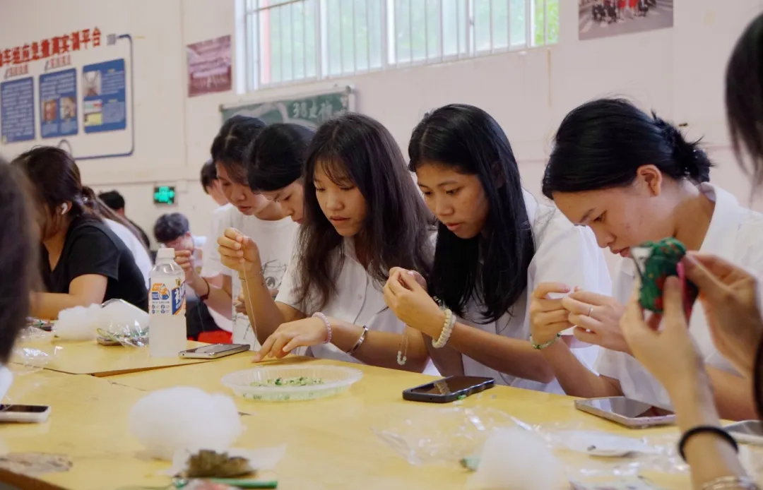 在手鏈制作區(qū)域,五彩絲線、精美珠子等材料整齊擺放。同學(xué)們充分發(fā)揮創(chuàng)意,將象征吉祥如意的五彩絲線與珠子巧妙搭配,編織出一條條獨具個性的端午手鏈。大家相互交流編織技巧,歡聲笑語不斷。