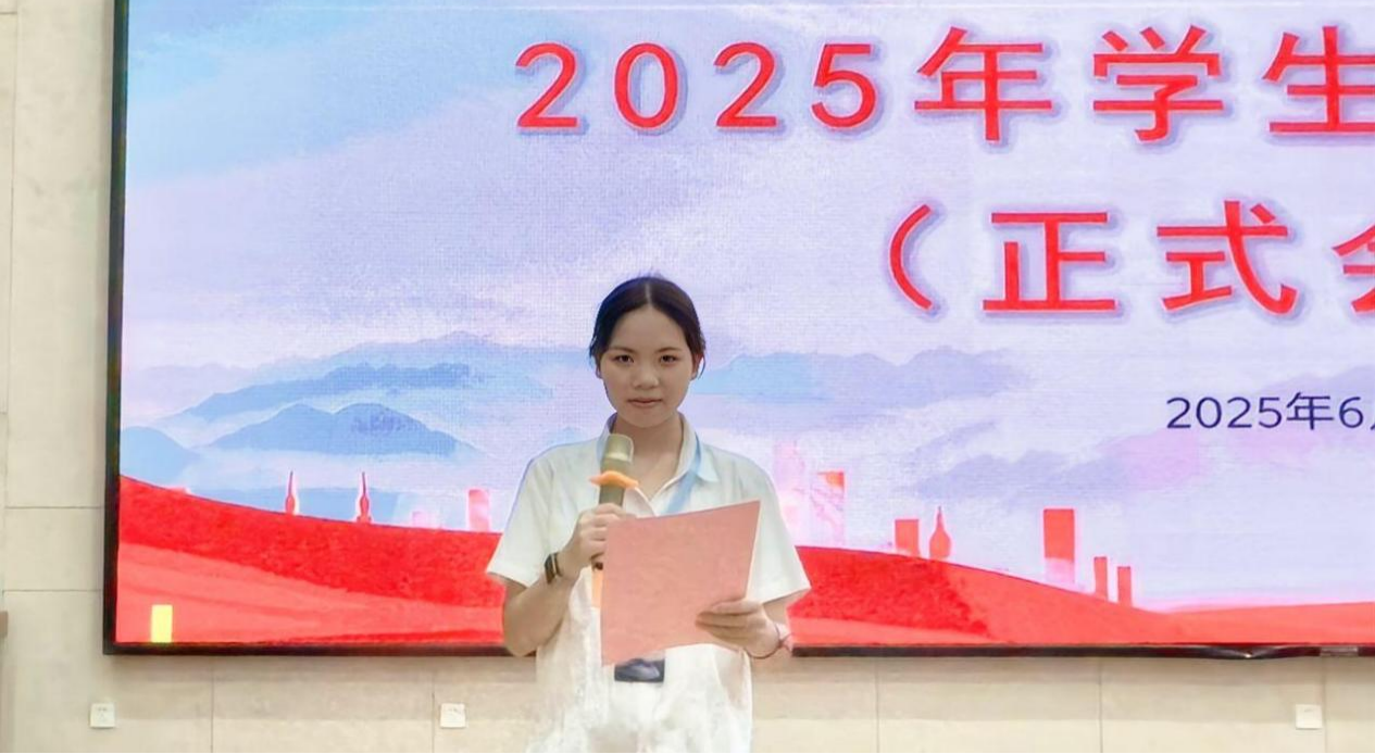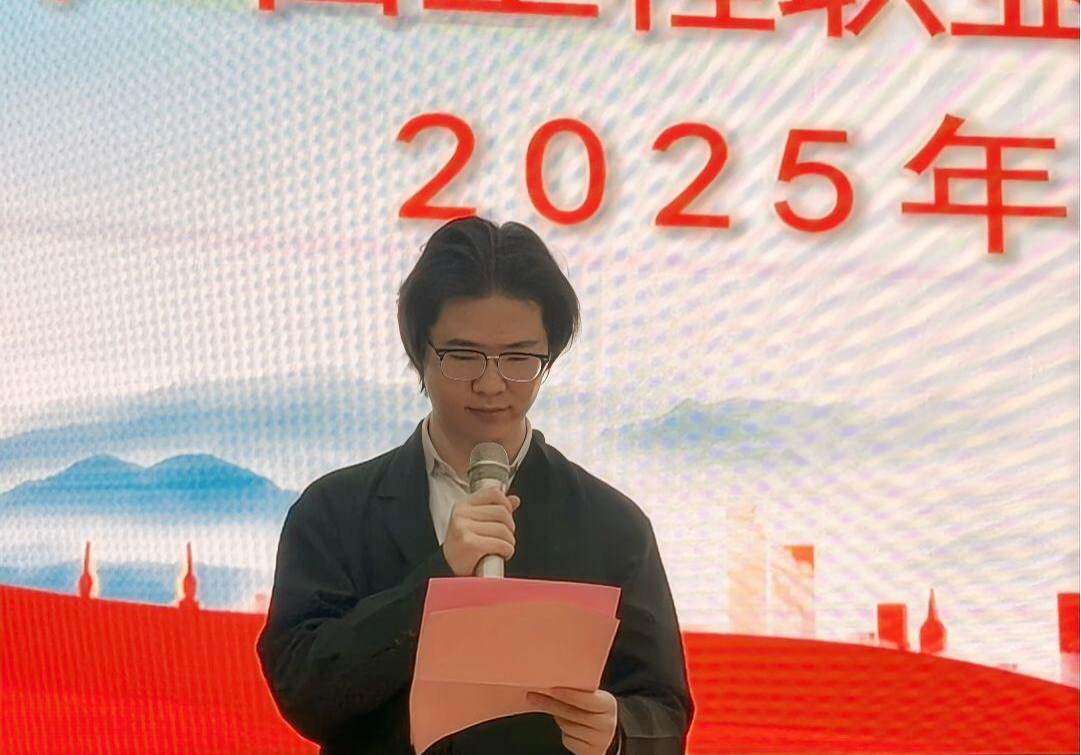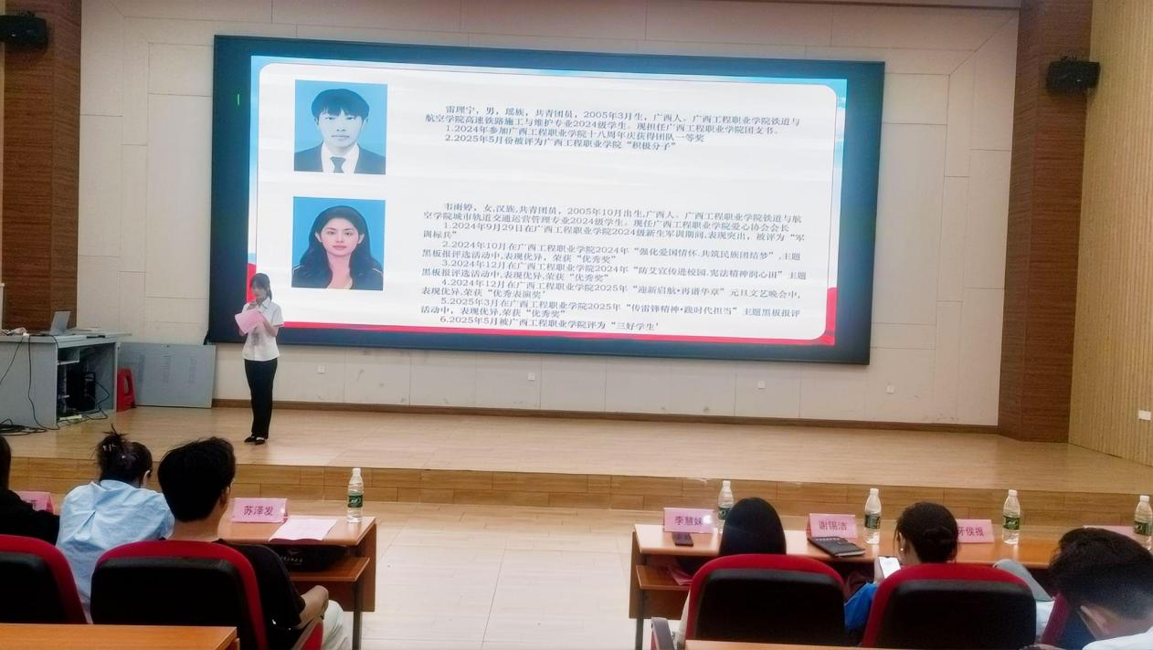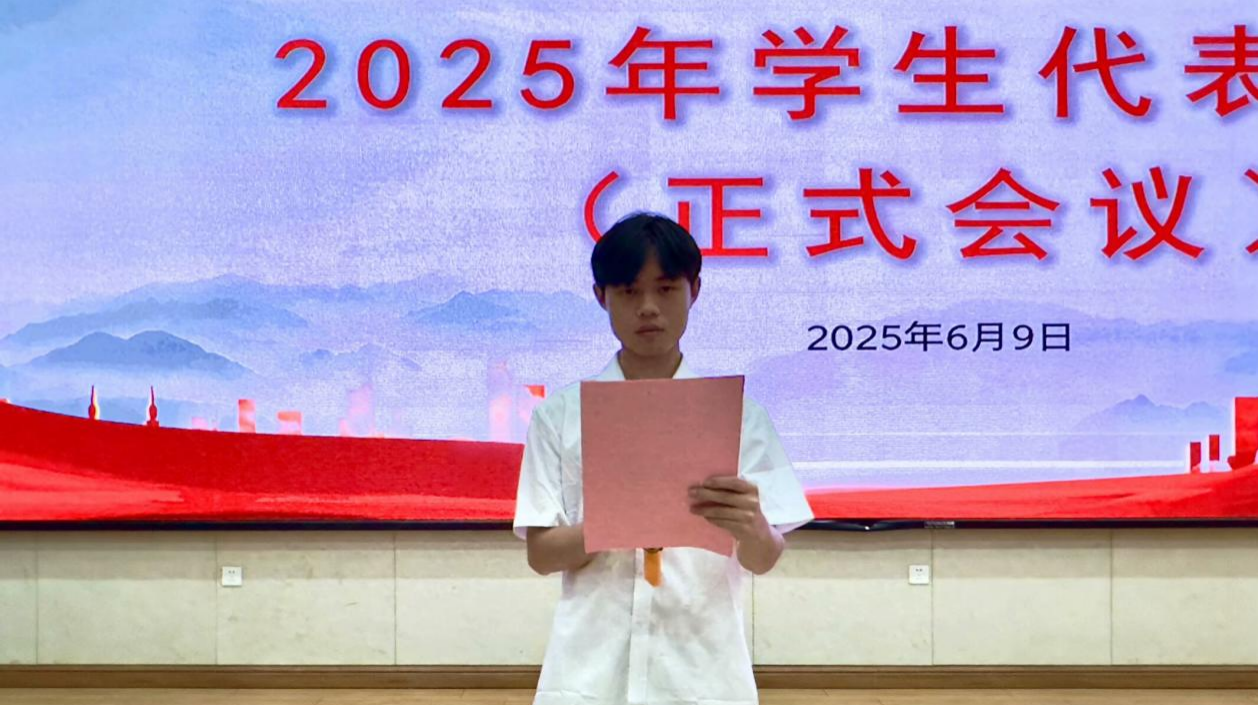 主持人章昊宣讀廣西工程職業(yè)學(xué)院鐵道與航空學(xué)院2025年學(xué)生代表大會(huì)總監(jiān)票人、監(jiān)票人、總計(jì)票人、計(jì)票人名單