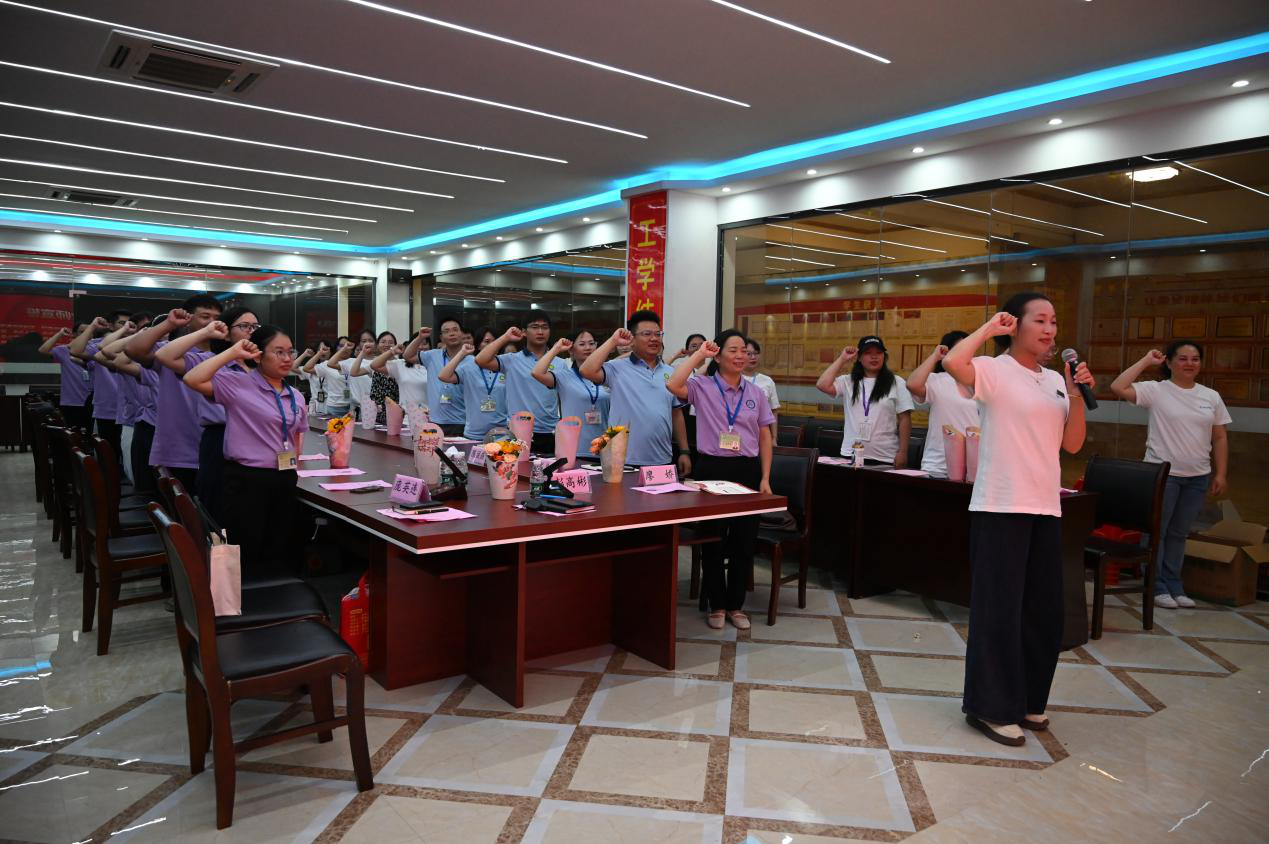 在學院黨支部書記、副院長廖嬌的帶領下,全體教師舉起右拳莊嚴宣誓:"忠誠黨的教育事業(yè),履行教書育人職責,爭做有理想信念、有道德情操、有扎實學識、有仁愛之心的黨和人民滿意的好老師!"誓言鏗鏘,彰顯了教師隊伍立德樹人的堅定決心。