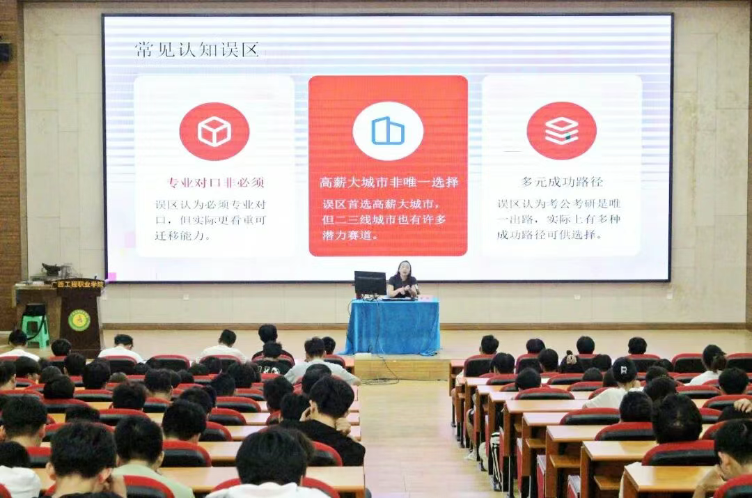 黨支部書記、副院長廖嬌作《樹立科學的就業(yè)與擇業(yè)觀》專題培訓,她通過生動的案例和詳實的數(shù)據(jù),分析了當前就業(yè)形勢和行業(yè)需求,引導學生們根據(jù)自身興趣、能力和市場需求進行合理定位。