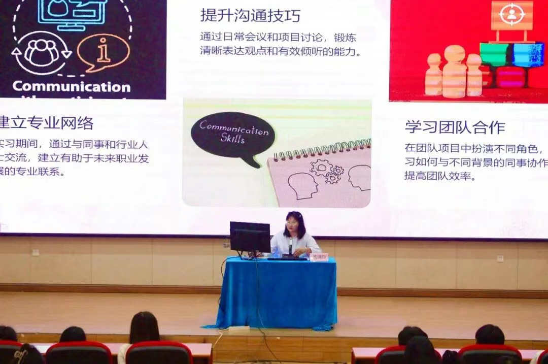 黨支部副書記黃滿秋作《實習目標與角色轉換》專題培訓,深入剖析了實習期間的目標設定,鼓勵學生們將理論知識與實踐操作緊密結合,通過實習來檢驗和提升自我。同時,她還著重講解了角色轉換的重要性,即從學生到職場人的身份轉變,引導學生們提前適應職場環(huán)境,培養(yǎng)良好的職業(yè)素養(yǎng)和團隊合作精神。
