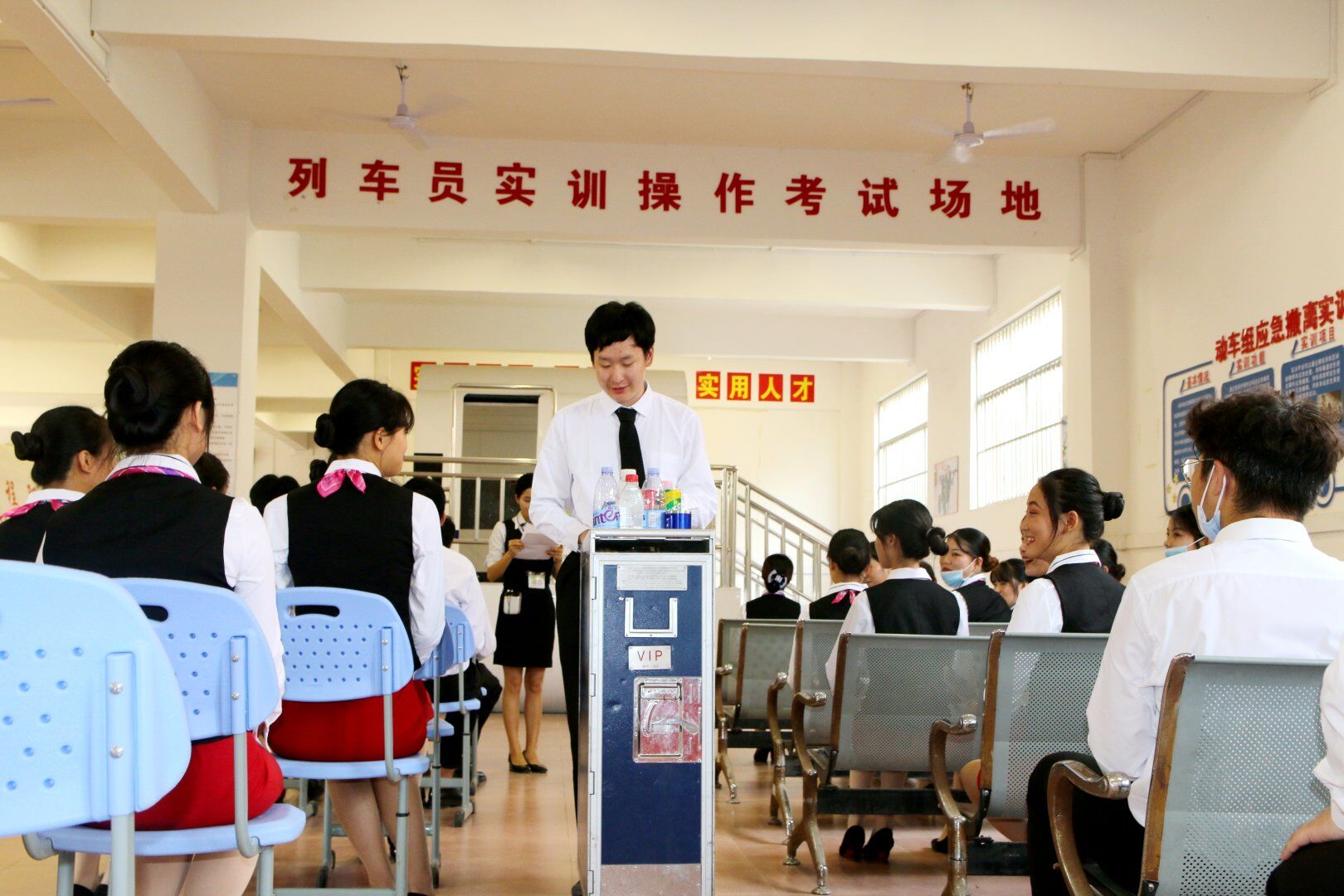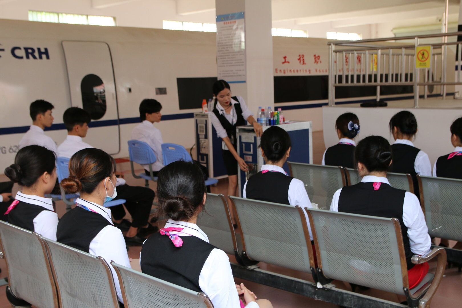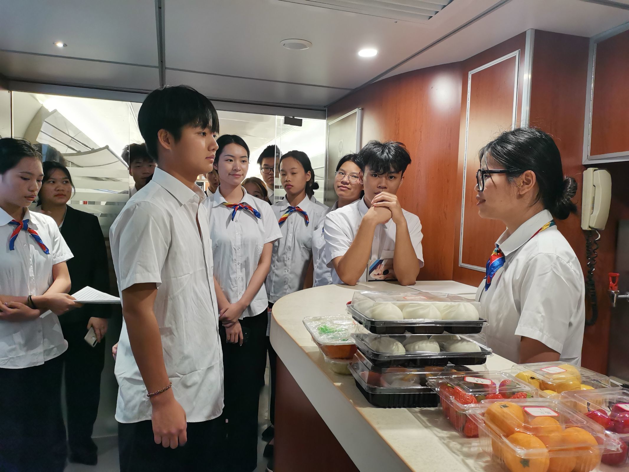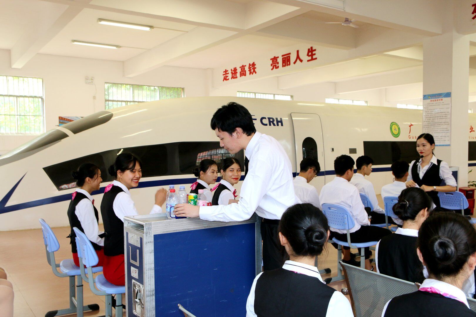 《高速鐵路動車餐飲服務(wù)作業(yè)實(shí)訓(xùn)》是22級高速鐵路客運(yùn)乘務(wù)專業(yè)實(shí)訓(xùn)課程,在鐵道與航空學(xué)院一樓動車艙上為期三周(9—11周)的實(shí)訓(xùn)課。授課方式以實(shí)踐操作為主理論講解為輔。實(shí)訓(xùn)內(nèi)容包括餐巾折花、托盤拿法、流動餐車售賣、餐吧車點(diǎn)餐四個項(xiàng)目,通過本次實(shí)訓(xùn),使學(xué)生了解托盤、流動餐車、餐吧車的結(jié)構(gòu),掌握流動餐車和餐吧車食品銷售基本流程,能夠掌握流動餐車和餐吧車食品銷售突發(fā)情況的應(yīng)對措施,能夠綜合運(yùn)用本專業(yè)相關(guān)知識解決銷售過程中遇到的問題,通過把理論知識運(yùn)用到實(shí)踐中,培養(yǎng)學(xué)生的動手能力和專業(yè)的服務(wù)意識。