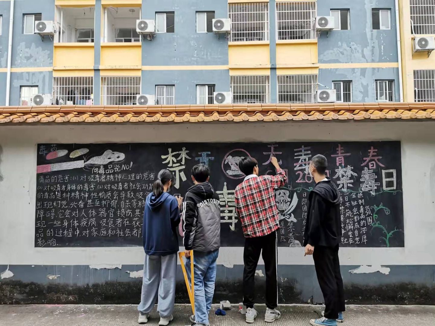 近日,我院學(xué)生會(huì)開(kāi)展主題為“禁毒宣傳”黑板報(bào)繪畫活動(dòng),學(xué)生會(huì)全體成員參與此次活動(dòng)。