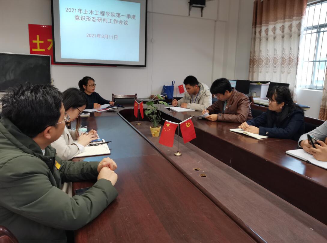 3月11日下午,土木工程學(xué)院在三樓會(huì)議室召開(kāi)第一季度意識(shí)形態(tài)工作研判會(huì)議。黨總支副書記黃秋霞、各黨支部書記、支委參加了會(huì)議。會(huì)議由黨委委員、土木工程學(xué)院副院長(zhǎng)李麗詩(shī)主持。