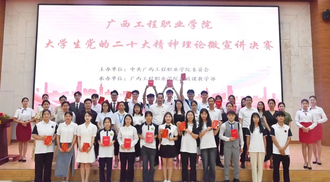 為引導(dǎo)我校大學(xué)生學(xué)思踐悟黨的二十大精神,推動(dòng)黨的創(chuàng)新理論走進(jìn)青年、深入人心。5月6日晚,我校在圖文信息大樓一樓學(xué)術(shù)報(bào)告廳,舉行廣西工程職業(yè)學(xué)院2023年大學(xué)生黨的二十大精神理論微宣講比賽決賽。