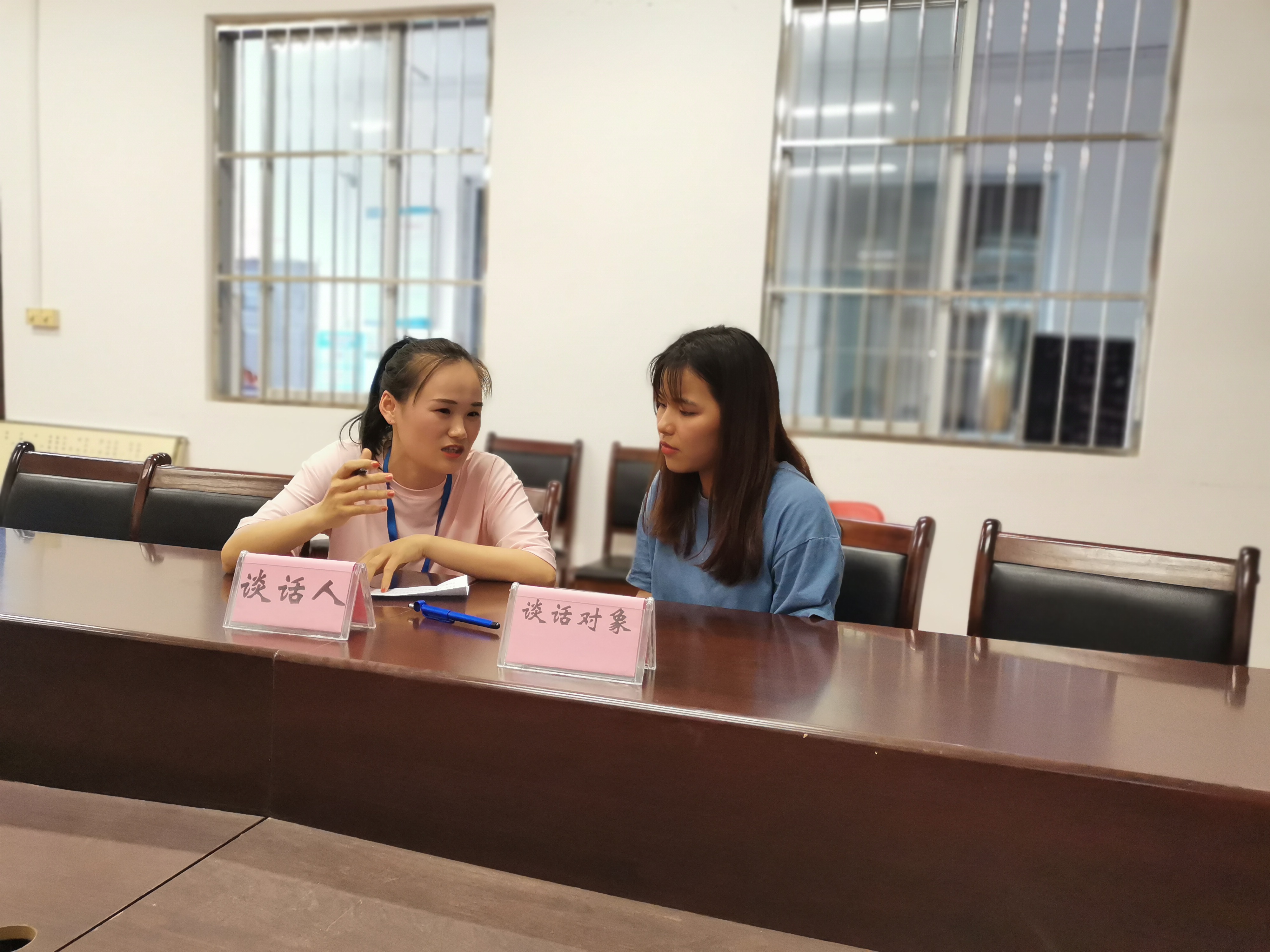 在第二部分面對(duì)面談話測(cè)試中,由學(xué)校副書記、副校長(zhǎng)胡細(xì)木、學(xué)生工作處負(fù)責(zé)人、土木工程學(xué)院負(fù)責(zé)人、以及學(xué)生管理工作經(jīng)驗(yàn)豐富的學(xué)工處老師、藝術(shù)設(shè)計(jì)學(xué)院負(fù)責(zé)人組成評(píng)委小組。為了大賽公平公正,賽前提前十分鐘抽題,安排一名學(xué)生作為談話對(duì)象,情景再現(xiàn)進(jìn)行面對(duì)面談話。