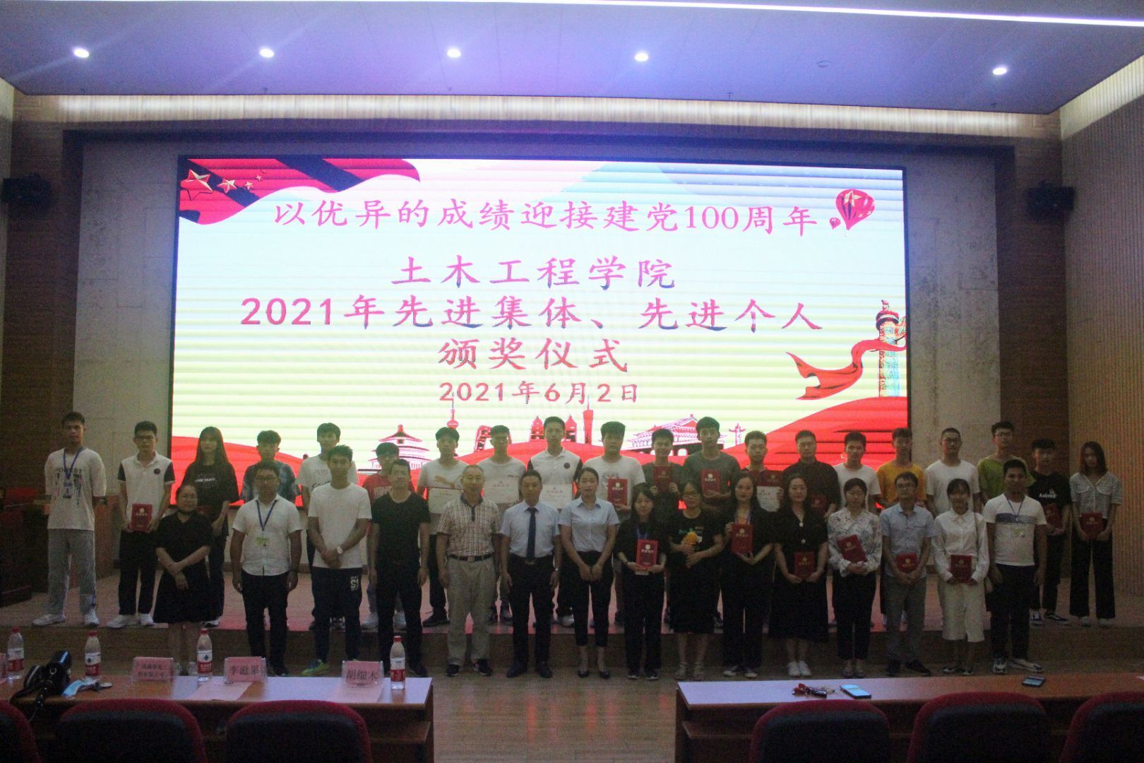 土木工程學(xué)院第一黨支部書記龍群良為獲獎學(xué)生頒獎