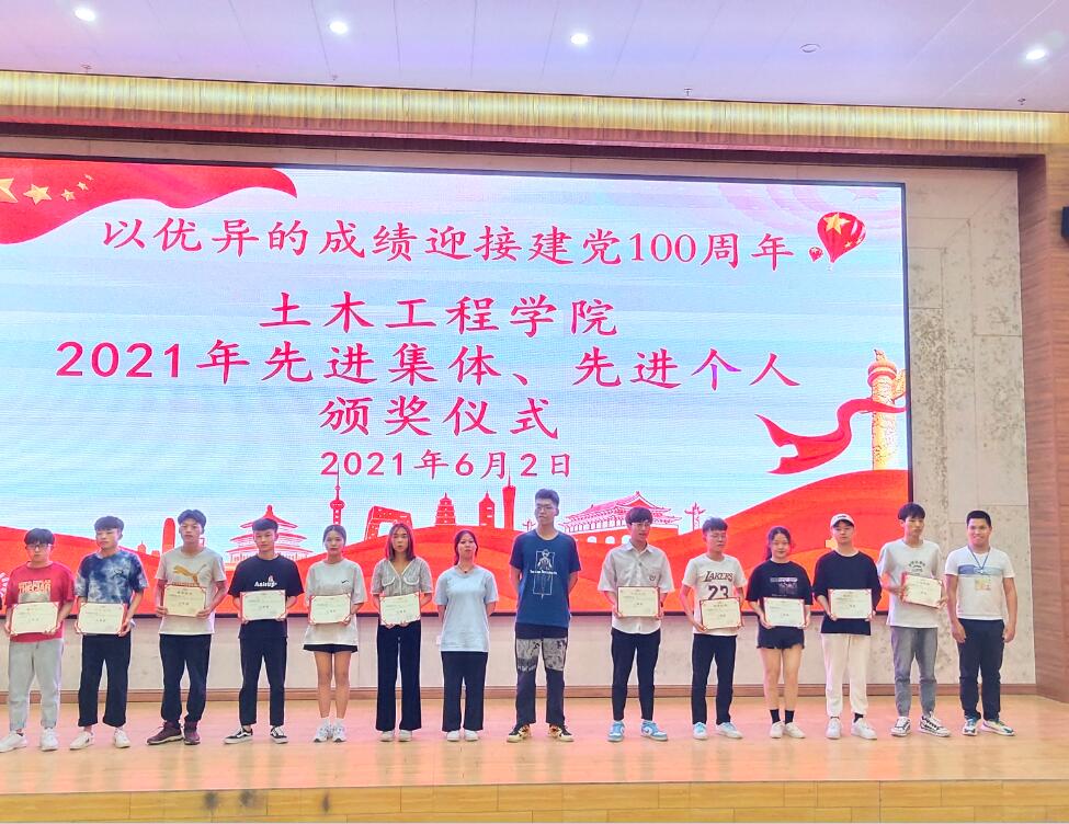 最后,土木工程學(xué)院黨支書書記、副院長李麗詩希望以上獲獎的老師、同學(xué)們要戒驕戒躁、珍惜榮譽。希望老師們不斷提高自身教學(xué)技能和水平,不忘初心,牢記教書育人的使命,堅持立德樹人、為人師表,做學(xué)生的良師益友和引路人。希望全體同學(xué)要勤奮學(xué)習(xí),勇于擔(dān)當(dāng),爭做新時代有理想、有作為、有擔(dān)當(dāng)?shù)漠?dāng)代青年。希望全體師生員工要以身邊的先進(jìn)作為榜樣,銳意進(jìn)取、奮力拼搏、真抓實干,為學(xué)校的教育教學(xué)事業(yè)貢獻(xiàn)自己的力量,以優(yōu)異的成績迎接中國共產(chǎn)黨建黨100周年!