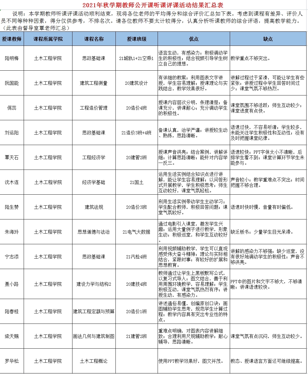 為了更好地加強(qiáng)教學(xué)常規(guī)管理,深入地了解課堂,了解教師及其教學(xué)的特色,推動(dòng)教師鉆研教材,土木工程學(xué)院教師積極參與廣西工程職業(yè)學(xué)院2021年秋學(xué)期教師聽課評(píng)課活動(dòng)。在上課前,每位老師都能認(rèn)真研究課程標(biāo)準(zhǔn)和教學(xué)方案,積極備課,盡心設(shè)計(jì)教案,以豐富充實(shí)的教學(xué)內(nèi)容,新穎獨(dú)特的教學(xué)方法向全校教師充分展示了自己的風(fēng)采。