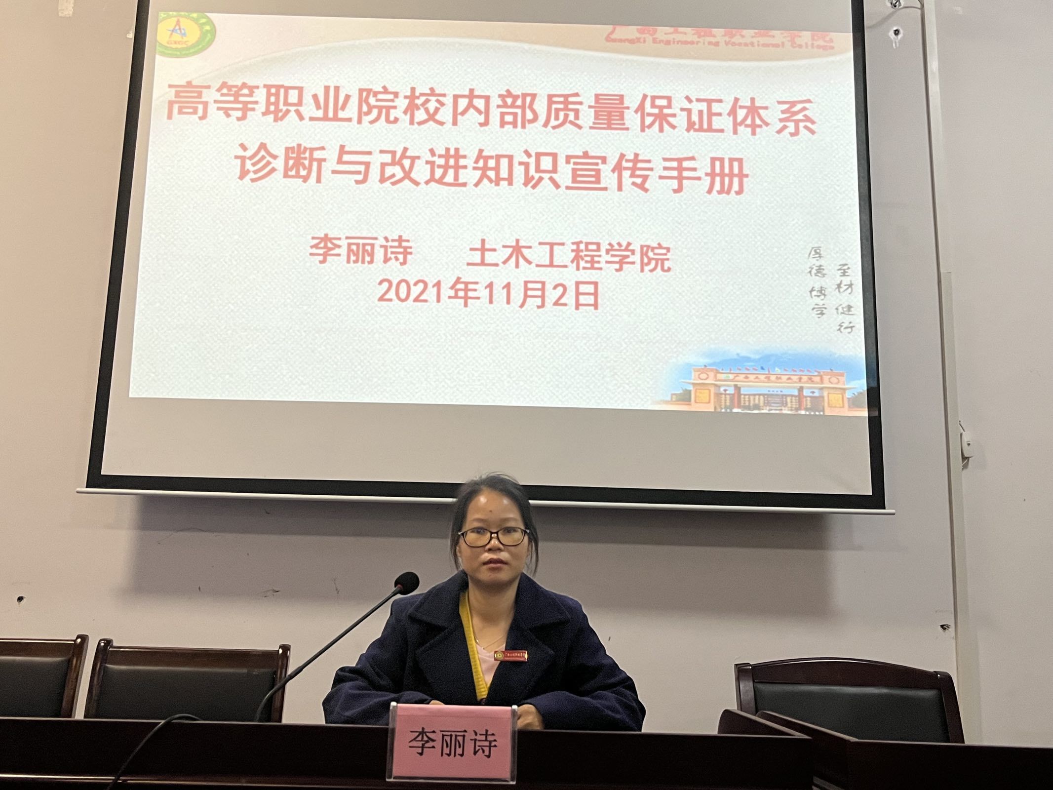 會(huì)議緊接著,由土木工程學(xué)院李麗詩(shī)副院長(zhǎng)對(duì)2021年學(xué)校年檢工作動(dòng)員及對(duì)本部門年檢工作進(jìn)行任務(wù)分解,給全體參會(huì)教職工作《高等職業(yè)學(xué)校內(nèi)部質(zhì)量保證體系診斷與改進(jìn)學(xué)習(xí)手冊(cè)》業(yè)務(wù)培訓(xùn)。