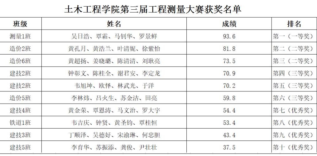 本次技能大賽主要考察選手們的觀測(cè)速度、觀測(cè)質(zhì)量、計(jì)算成果質(zhì)量三項(xiàng),同時(shí)也在考驗(yàn)各參賽小組間的協(xié)同配合和專(zhuān)業(yè)理論知識(shí)儲(chǔ)備,旨在提高參賽選手們的測(cè)量技術(shù),熟練并鞏固參賽選手們對(duì)測(cè)量技能的掌握,其比賽內(nèi)容四等水準(zhǔn)測(cè)量常作為小地區(qū)施工測(cè)量的高程基本控制,在土木工程測(cè)量中用途廣、實(shí)用性高,此次工程測(cè)量比賽有效提高了學(xué)生們的實(shí)踐動(dòng)手能力,促進(jìn)了學(xué)用結(jié)合,以實(shí)踐成果來(lái)體現(xiàn)學(xué)習(xí)成效。同時(shí)也鞏固、擴(kuò)大和加深了同學(xué)們從課堂上所學(xué)的理論知識(shí),增加了同學(xué)們對(duì)于工程測(cè)量學(xué)習(xí)的興趣,讓同學(xué)們系統(tǒng)地掌握了測(cè)量?jī)x器操作、實(shí)測(cè)、計(jì)算等基本技能,使實(shí)際工作能力得到鍛煉,并為學(xué)生們將來(lái)踏入社會(huì)能夠順利工作,打下了堅(jiān)實(shí)的基礎(chǔ)。