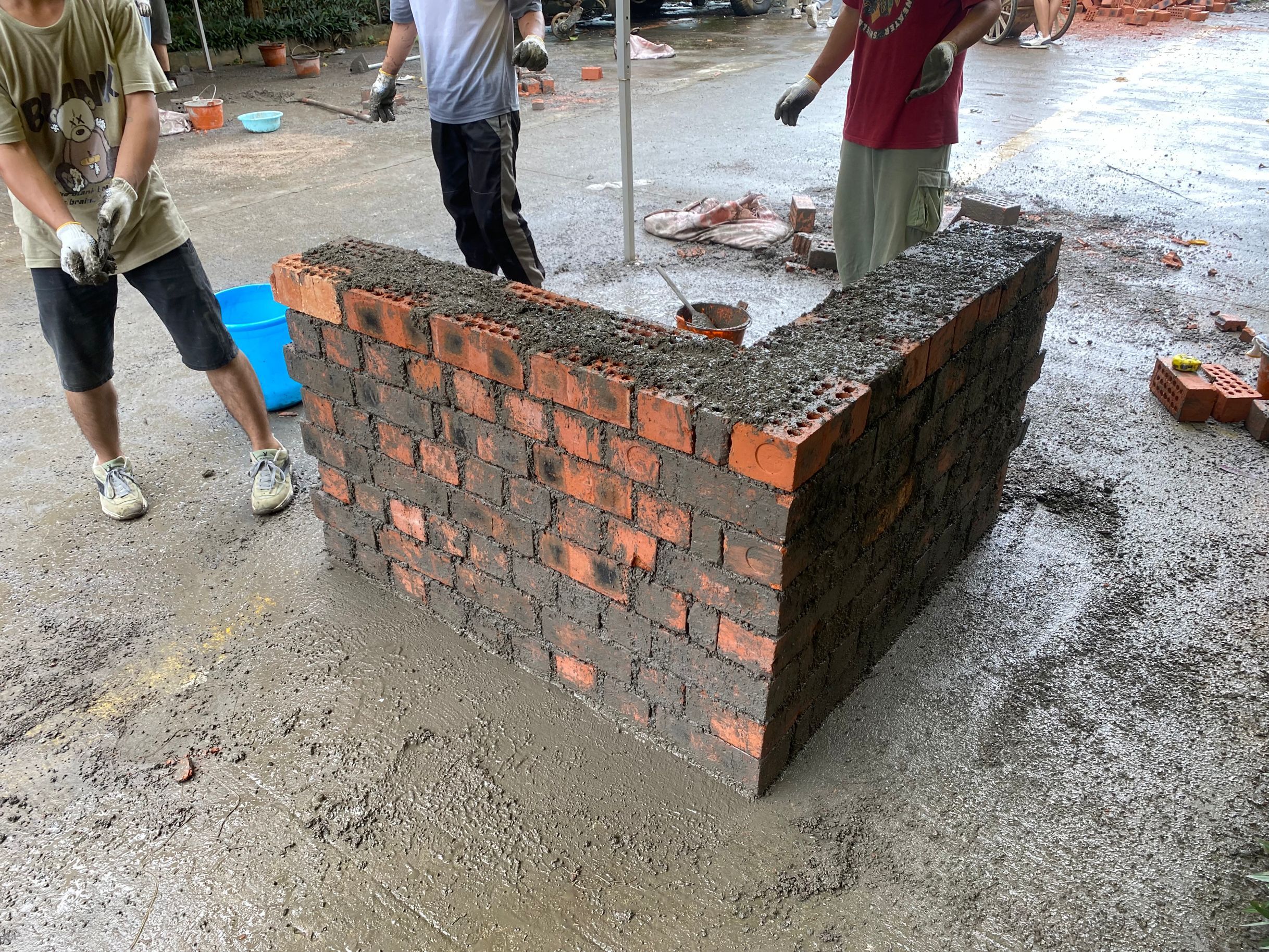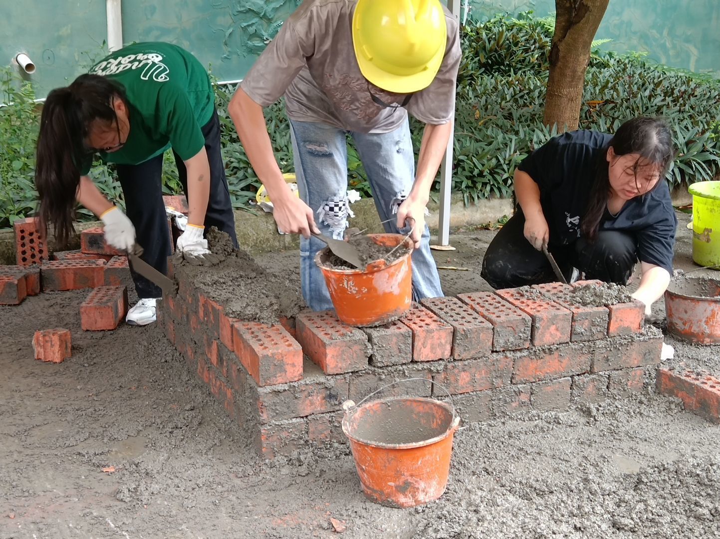 本次比賽要求選手們?cè)?5分鐘內(nèi)完成長(zhǎng)約2~3m、高約0.9~1.2m墻體砌筑工作,砌筑要求為:墻厚240mm,轉(zhuǎn)角設(shè)構(gòu)造柱邊留馬牙槎,設(shè)拉結(jié)筋。競(jìng)賽中,參賽隊(duì)伍充分發(fā)揚(yáng)精益求精、一絲不茍的工匠精神,利用兩兩配合、分工協(xié)作的方式,一個(gè)負(fù)責(zé)砌筑磚塊,一個(gè)負(fù)責(zé)幫忙輔助放線、擺磚、砌墻、和泥漿、切磚等工序在選手們熟練的操作下,進(jìn)行的有條不紊。選手們賽出了風(fēng)格、賽出了水平。