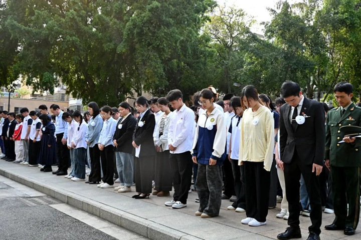 圖為全體師生靜默致哀,緬懷革命先烈