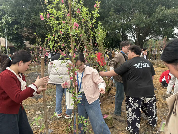 植樹結(jié)束后,全體參與人員在桃花林前合影留念,記錄下這一充滿意義的時(shí)刻。