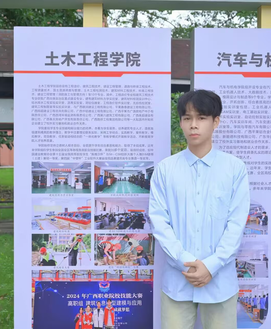 楊恒逸,男,2025屆自治區(qū)級(jí)優(yōu)秀畢業(yè)生。就讀于廣西工程職業(yè)學(xué)院土木學(xué)院建設(shè)工程管理專業(yè),曾連續(xù)兩年擔(dān)任2022級(jí)建設(shè)工程管理1班學(xué)習(xí)委員。