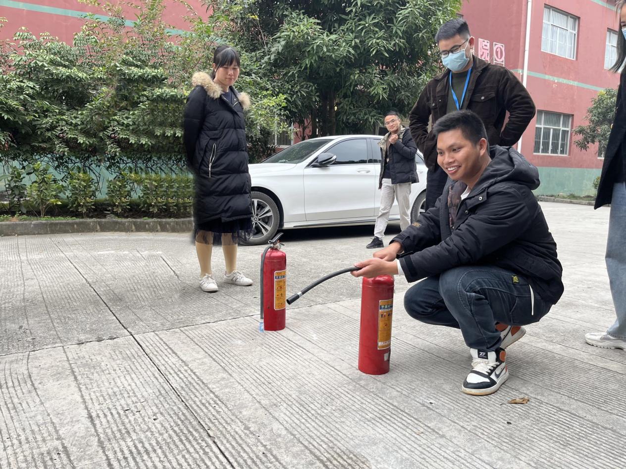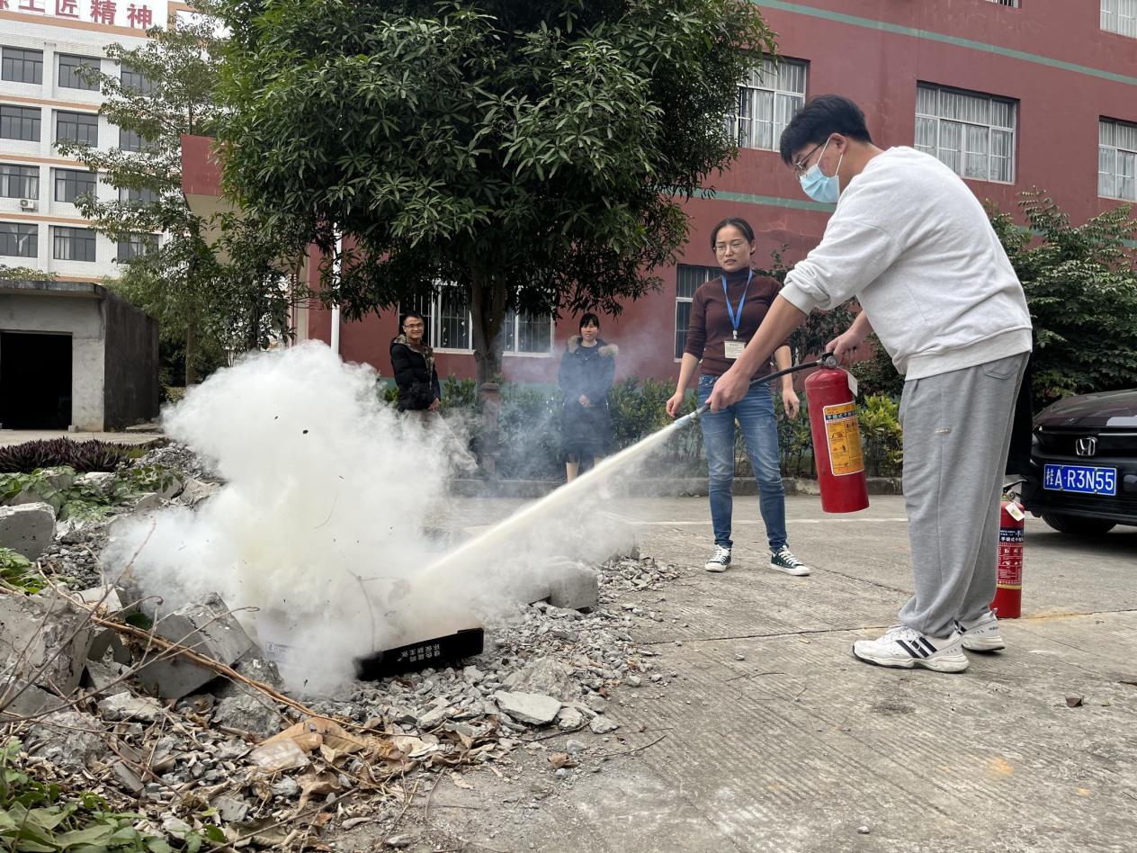 陳春任老師在進(jìn)行滅火器使用示范