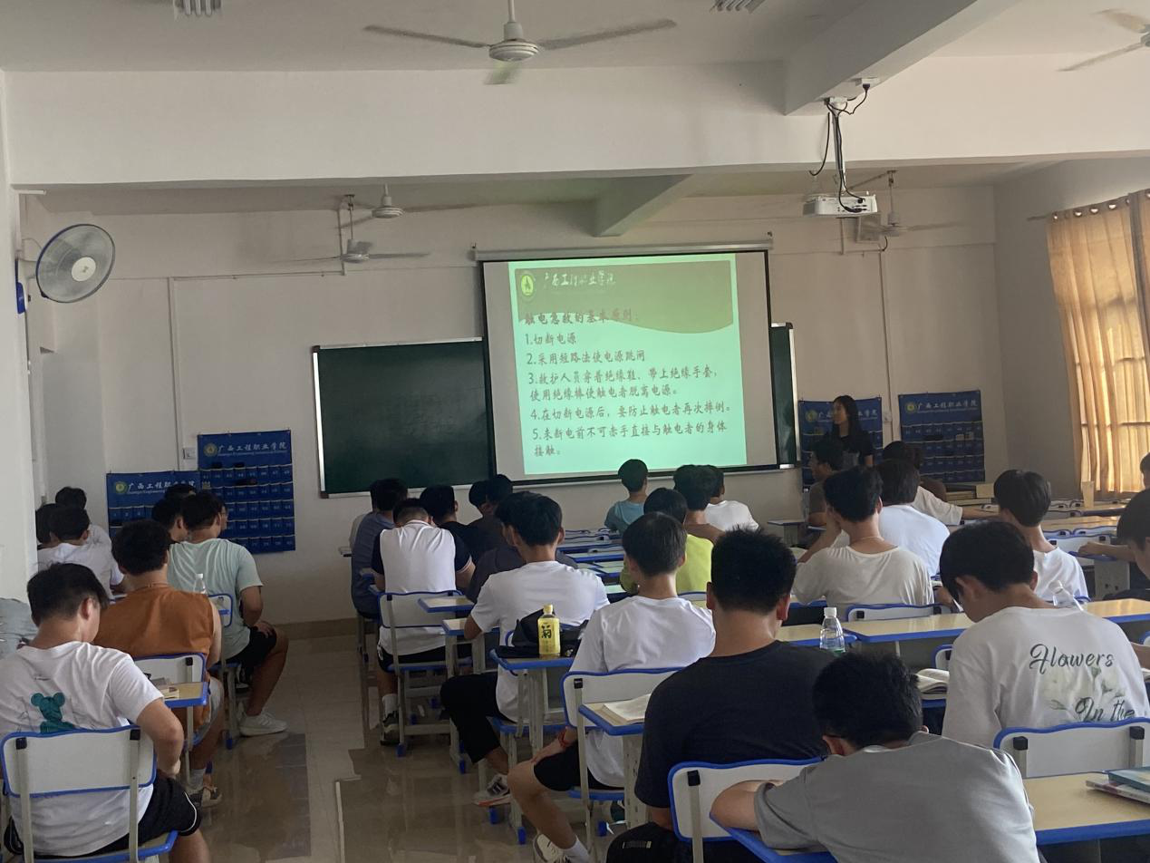 學(xué)生在進(jìn)行實(shí)驗(yàn)實(shí)訓(xùn)室安全教育培訓(xùn)現(xiàn)場(chǎng)圖