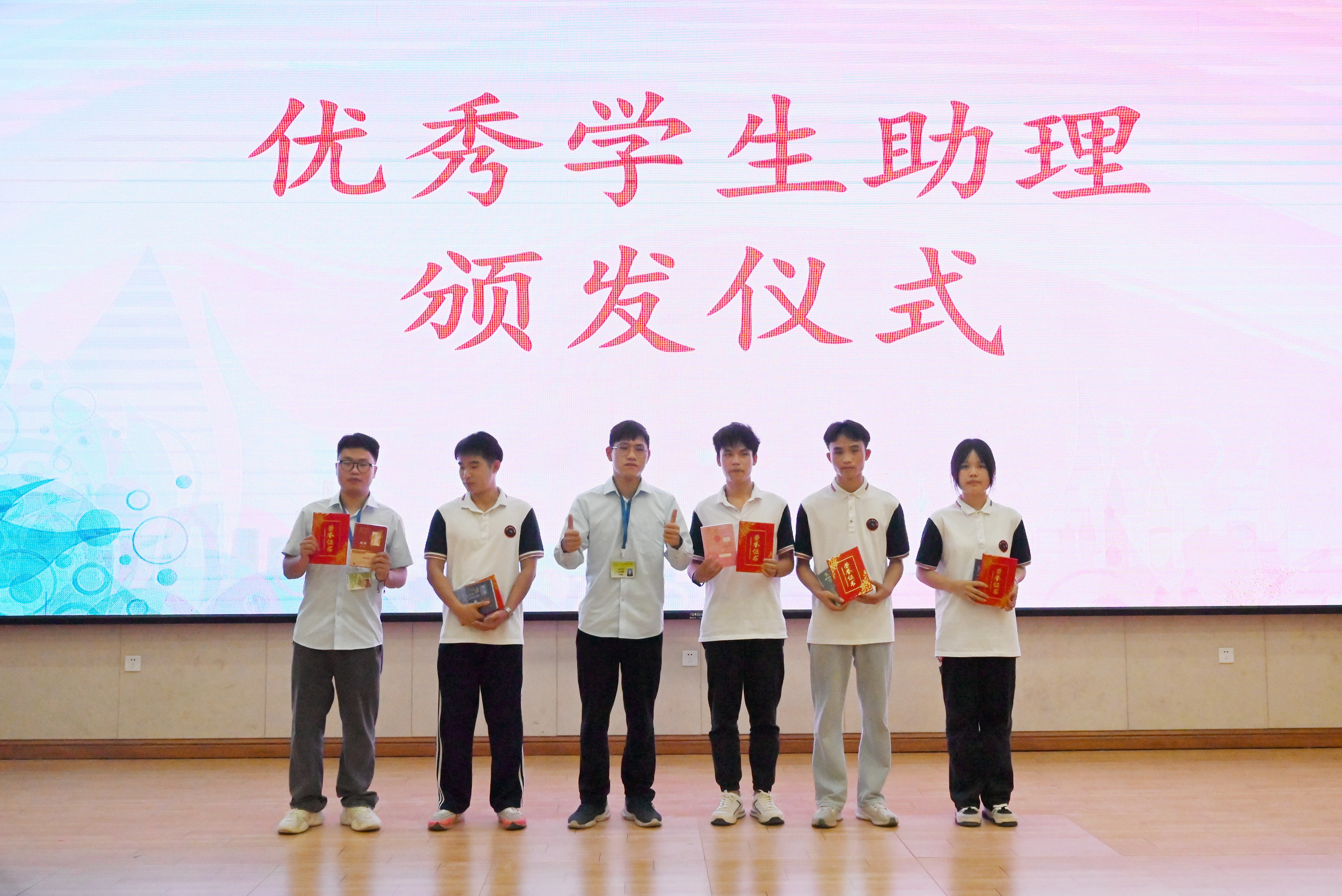 韋連飛老師為獲得三等獎(jiǎng)的覃建華、胡石柳、曹一心同學(xué)頒獎(jiǎng)
