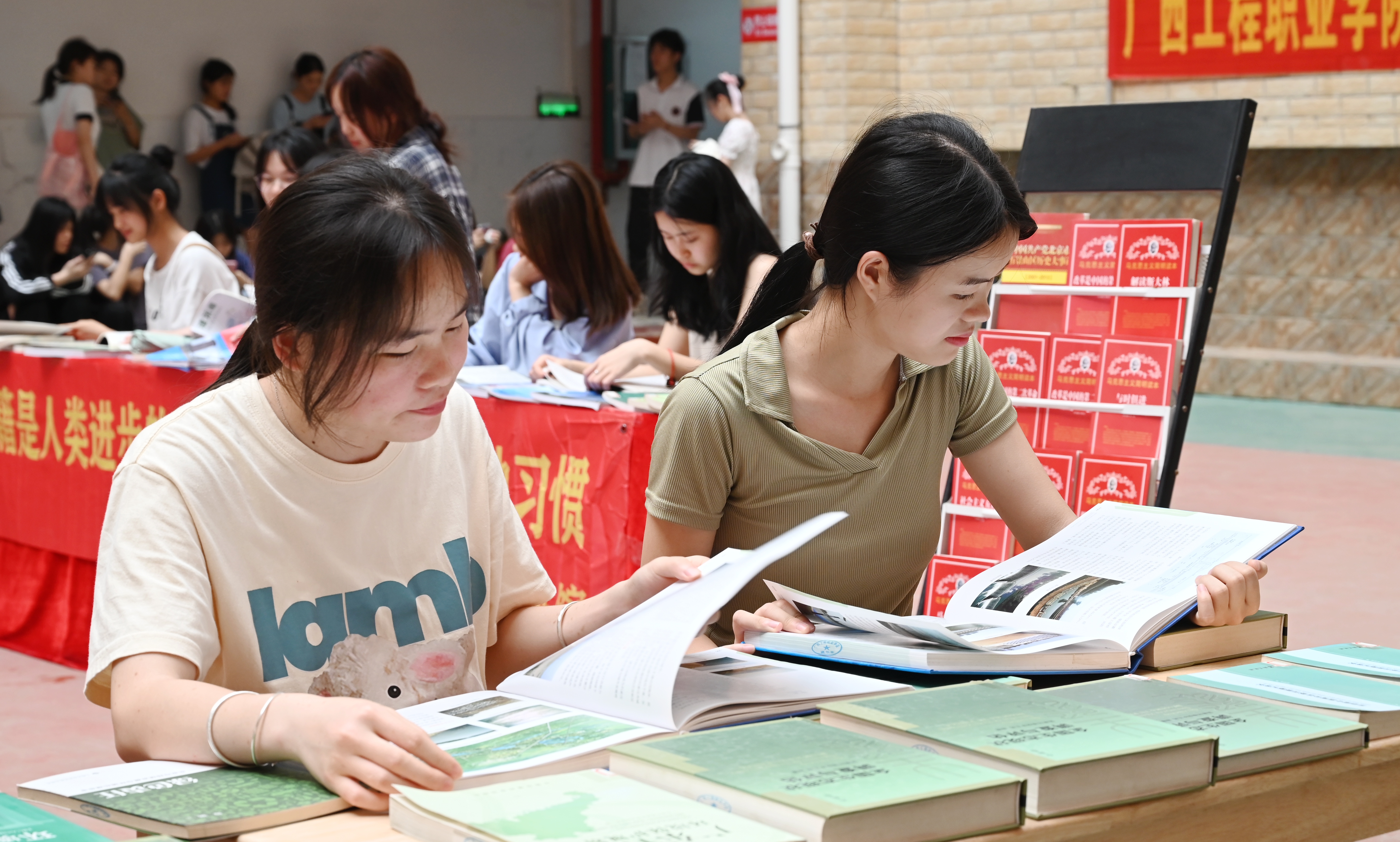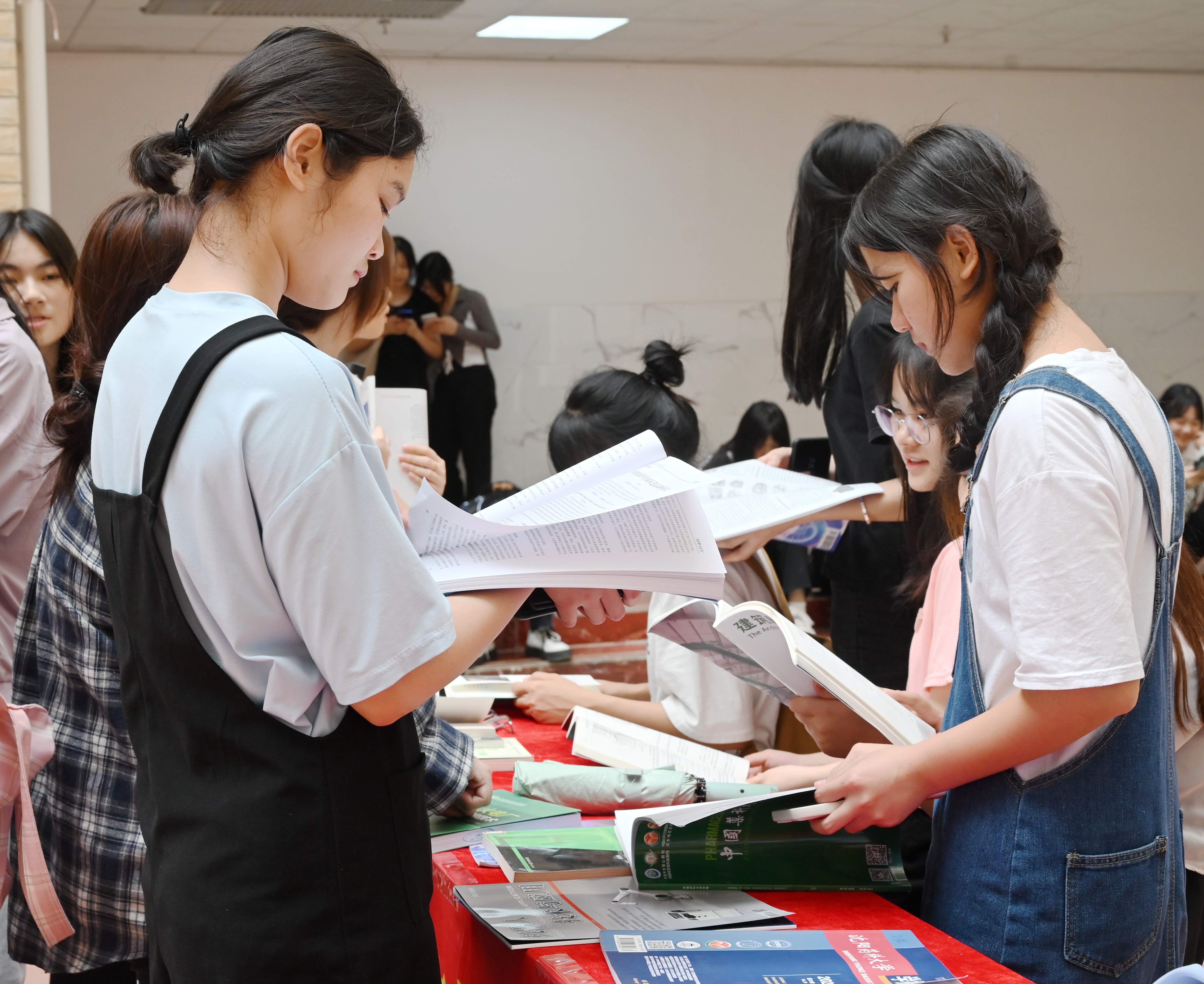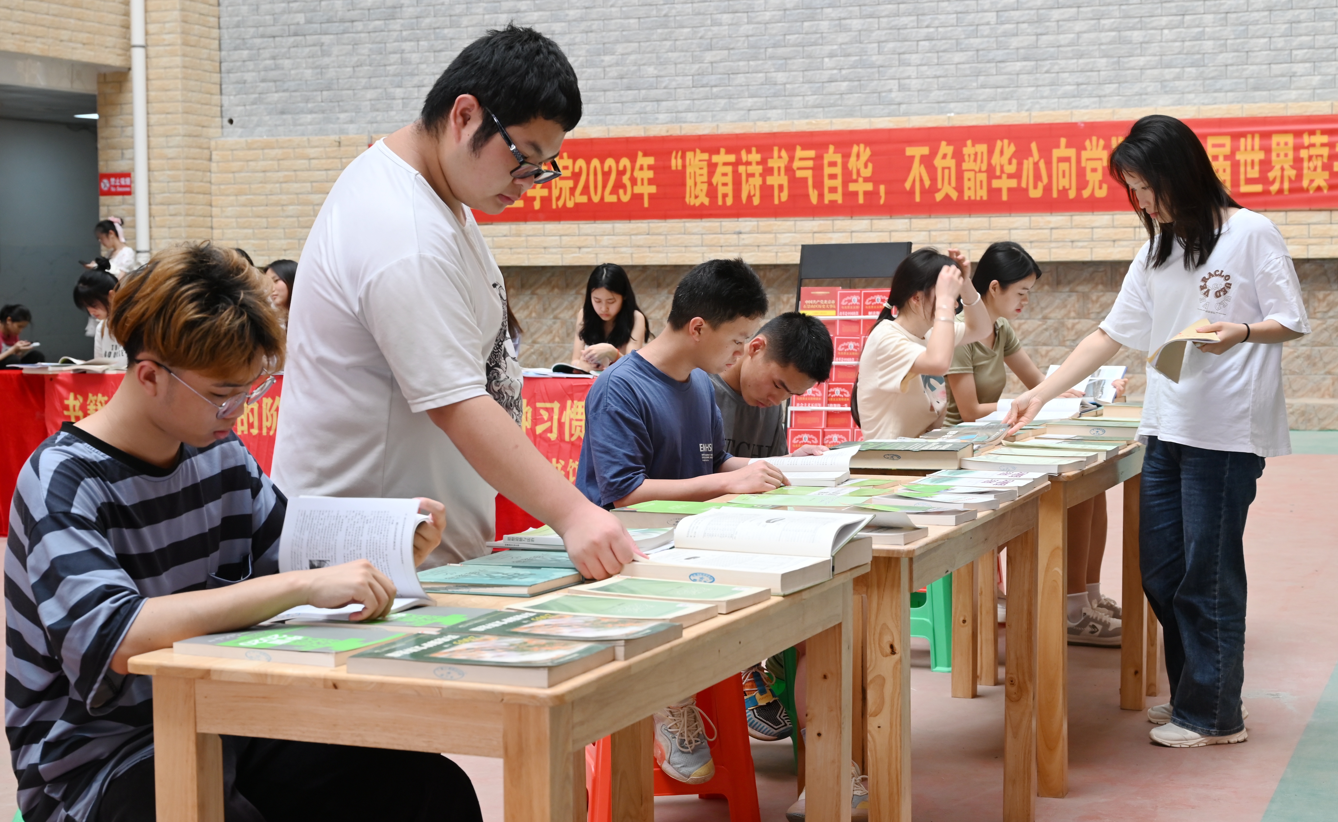 在圖文信息大樓一樓大廳出展紅色讀物、經(jīng)典文學(xué)作品、生態(tài)文明類書刊等,同學(xué)們?cè)陟o心閱讀,徜徉書海,品味書香。