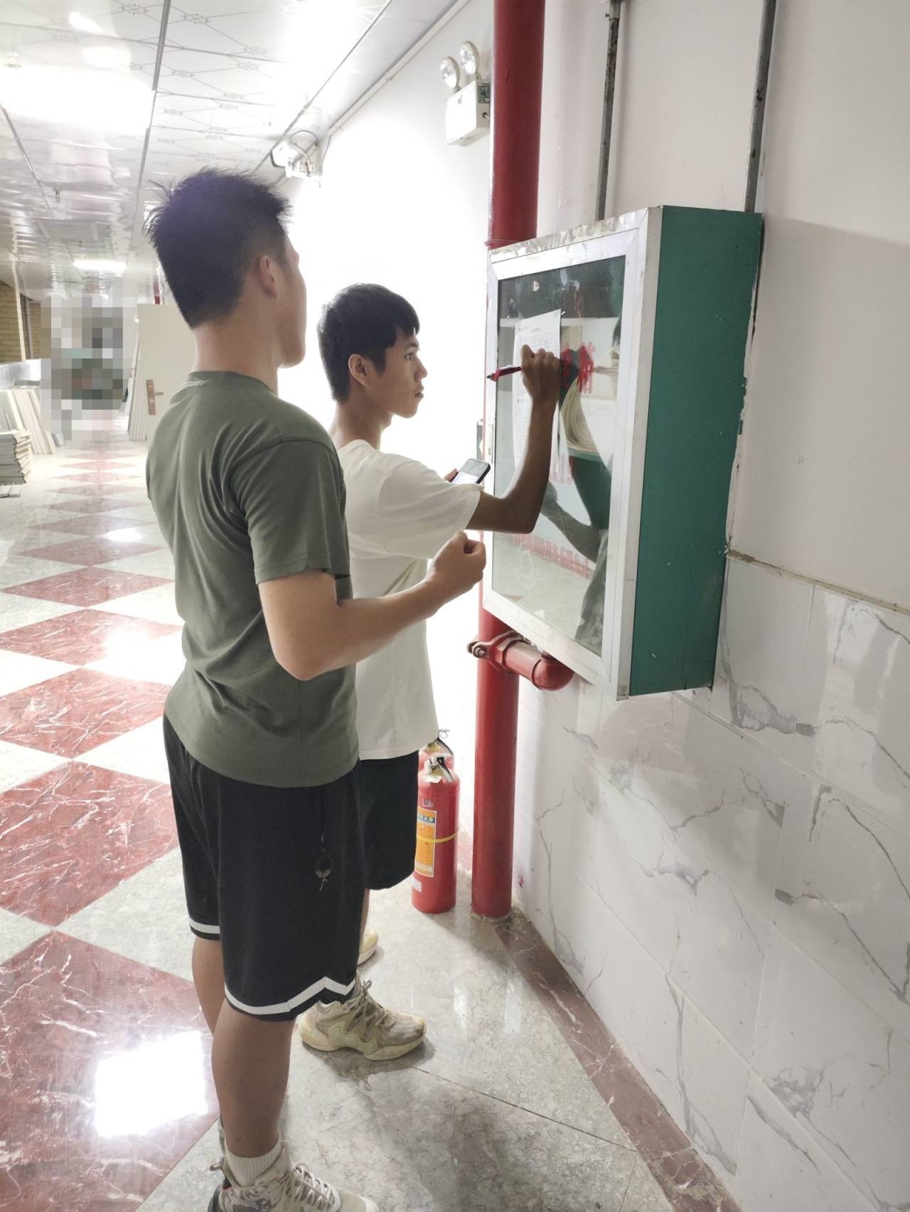 安全管理,人人有責(zé)。鄒聲華科長帶領(lǐng)學(xué)生助理巡查了圖文信息大樓一至六樓的消防安全設(shè)置,對各樓層的消防設(shè)施進(jìn)行了細(xì)致嚴(yán)密地檢查,及時登記消防設(shè)施情況并及時整治,堅決把好安全關(guān),筑牢安全防線。