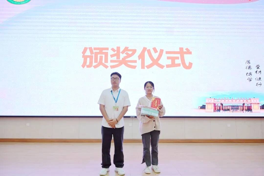 農(nóng)山老師為獲得二等獎(jiǎng)的譚玉梅同學(xué)頒獎(jiǎng)