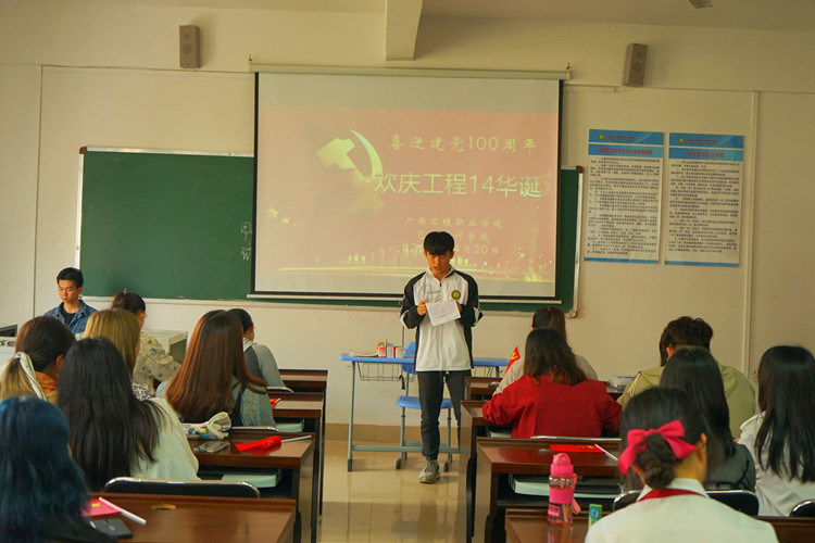 2021年4月20日下午,廣西工程職業(yè)學(xué)院藝術(shù)設(shè)計(jì)學(xué)院在設(shè)計(jì)樓402多媒體教室開展“喜迎建黨100周年,歡慶工程14華誕”主題活動(dòng),藝術(shù)設(shè)計(jì)學(xué)院黨支部書記兼副院長覃鳳姣、分團(tuán)委書記兼學(xué)生科科長潘翠萍、全體輔導(dǎo)員、專任教師以及學(xué)生代表參加了活動(dòng),活動(dòng)由藝術(shù)設(shè)計(jì)學(xué)院學(xué)生會(huì)鄭智元同學(xué)主持。